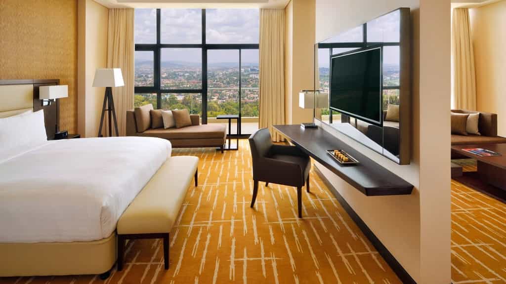 The Marriott's sleek luxury may come as a surprise to anyone familiar with Rwanda's recent history. But Kigali has grown and moved forward. The hotel's imposing contemporary facade is unmistakable, with its large windows and palm-fronted entrance. Bellhops smile broadly as you enter the lobby (itself a welcoming, light-filled space with clusters of seating, and wall of locally woven bowls). There are four on-site restaurants, a good spa for post-travel unwinding, a pool, and rambling gardens laced with pathways.