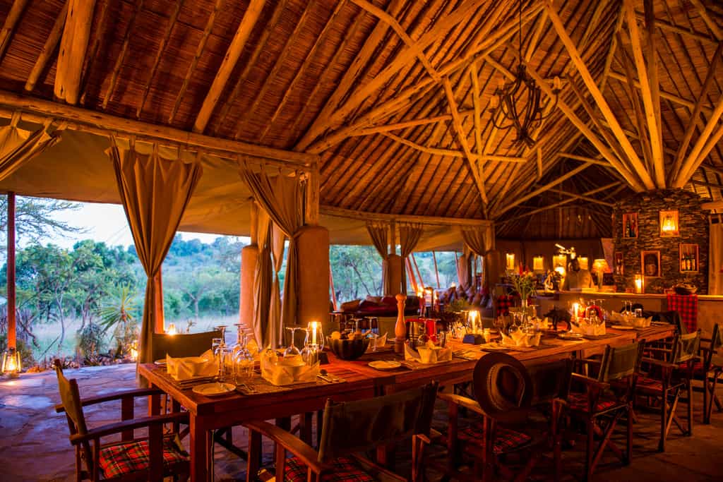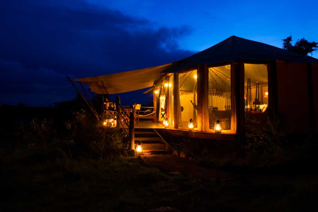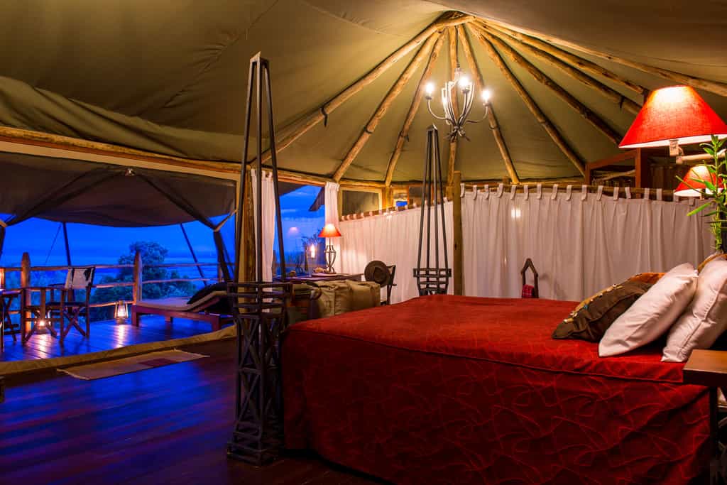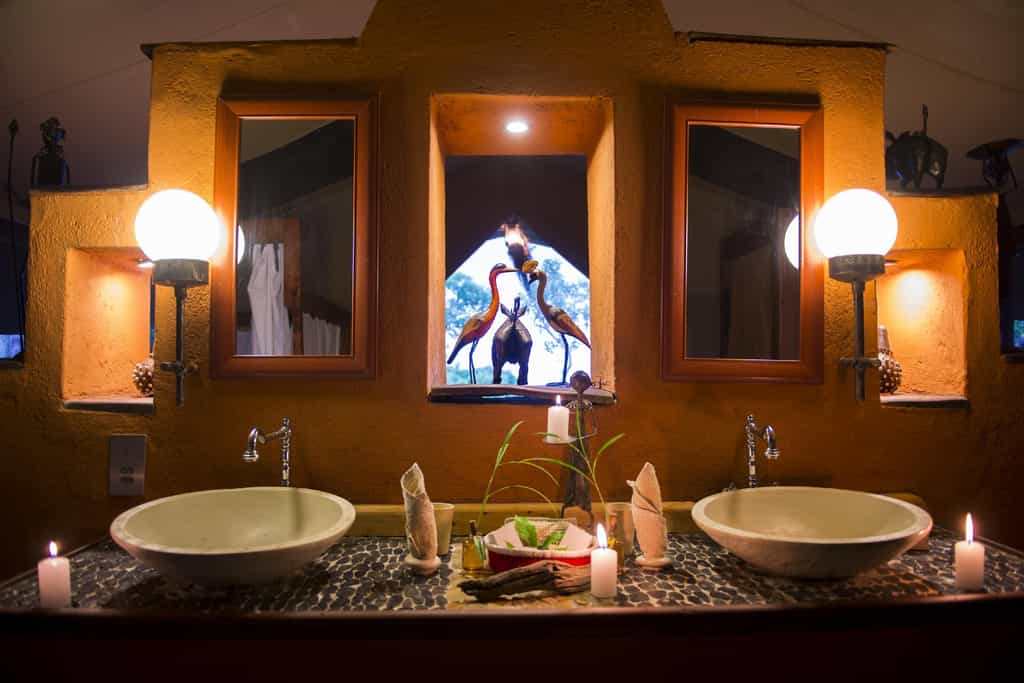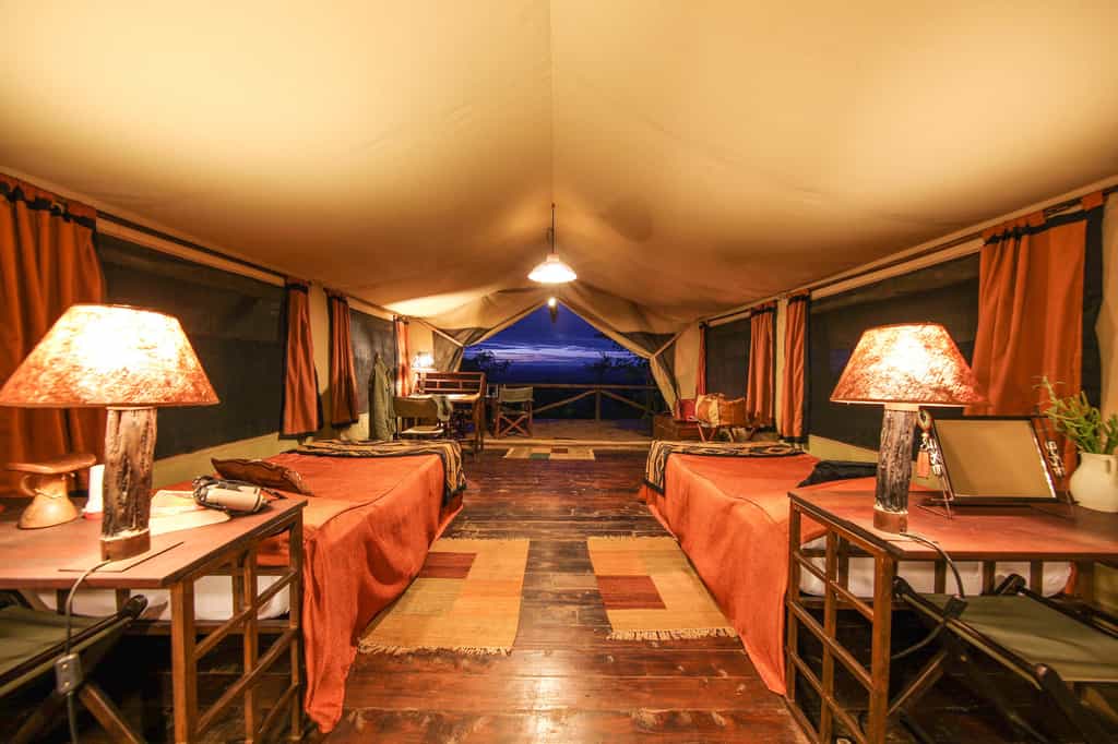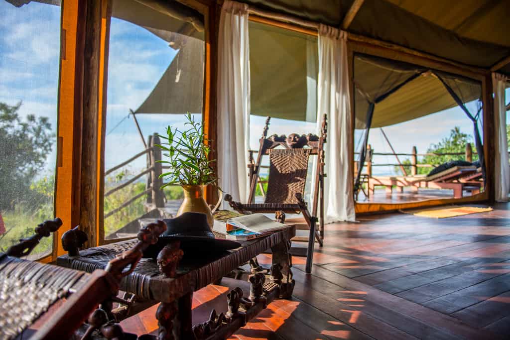 Accommodation is in 12 simple but adequate canvas tents raised on platforms on a hillside, with polished wooden floors and hot showers, large verandas and valley views. The light-filled Classic safari tents sleep two adults and two children up to 16 years. The Deluxe tents offer the same amenities with a greater degree of space and luxury, comfortably sleeping up to three adults and two children. The decor throughout is earthy and unfussy, but everything is impeccably clean and well-maintained.