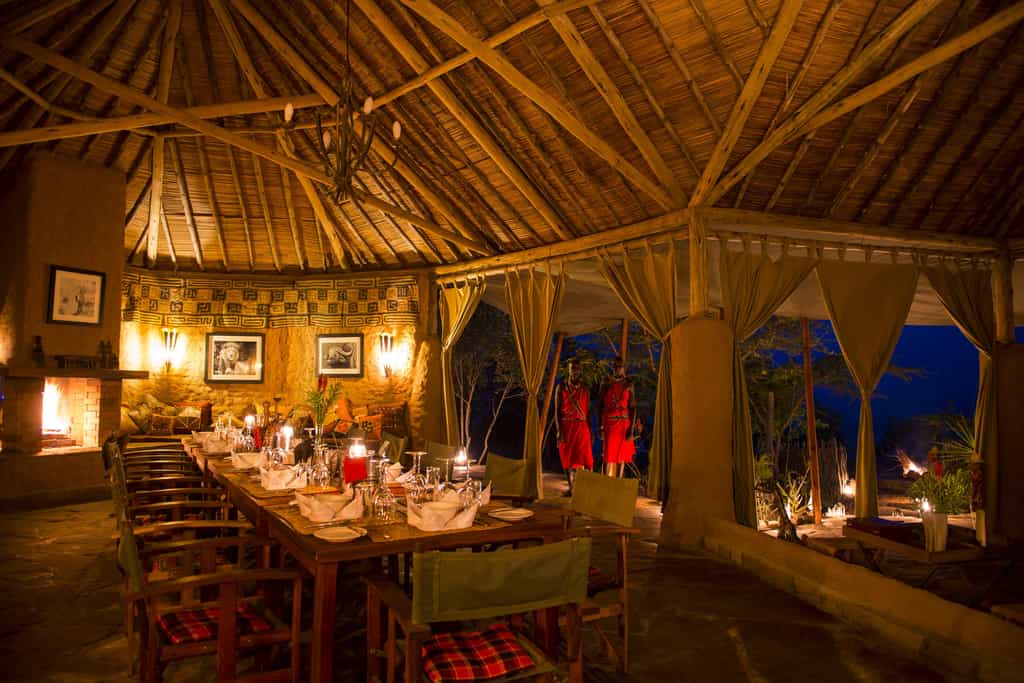 The central area shelters beneath a rambling thatched roof, with walls of curtains that can be drawn back for uninterrupted views of the valley. From here, the vantage is spectacular, making it a great spot to plant yourself between the action. There are two restaurants, both serving buffet-style meals, one with a beautiful stone fireplace. There is plenty of seating to go around, and a fabulous bar stocked with the classics and a few specialities.