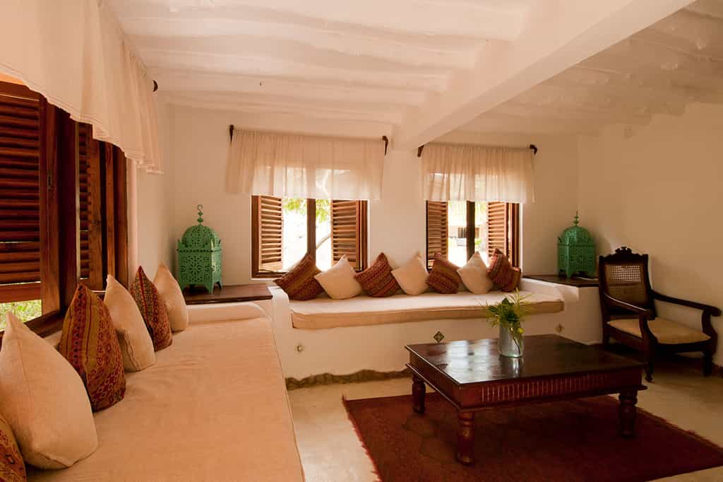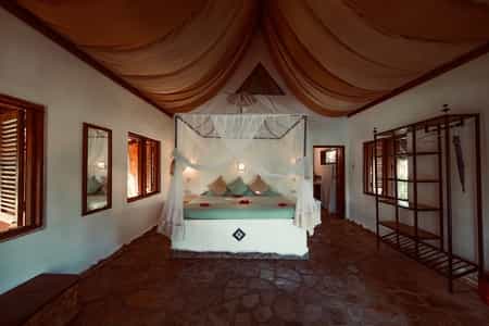 Kinasi Lodge offers delightful accommodation in 14 cottages, decked out in a playfully eccentric island style with elements of coastal Tanzania, African, Indian and Arab cultures. Furnished with beautiful locally hand-crafted furniture, walk-in mosquito nets over king-sized beds, whirring fans and en-suite bathrooms with solar-heated water, the cottages beg you to unwind. Hear vibrations in the night air? It's the local bats emerging from the mangrove to find dinner.