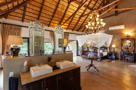There are 11 roomy colonial suites, including two romantic honeymoon suites. All suites are equipped with air conditioning, Victorian ball-and-claw bath, indoor and outdoor showers and, in the honeymoon suites, a plunge pool. All offer lovely views of the savanna and its wildlife inhabitants. There are monkeys in the camp so don't leave your things around; they're brazen enough to steal toast off your breakfast table! Each private veranda has a hammock. A separate four-bedroomed villa with its own staff caters for families.