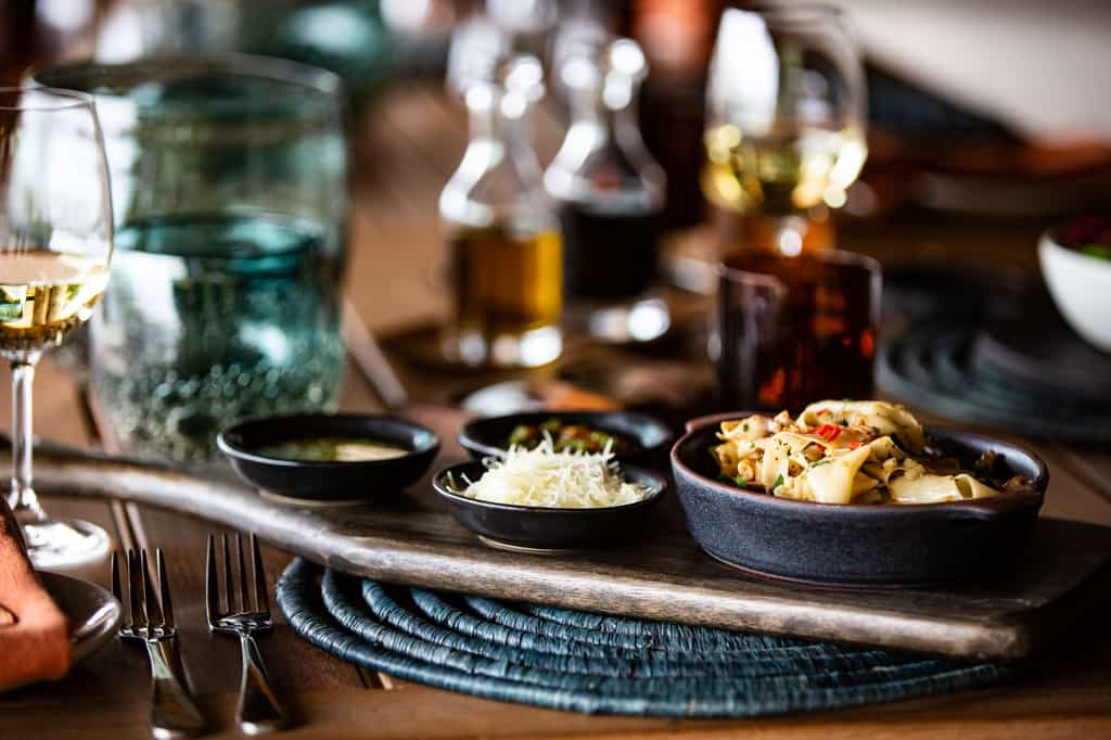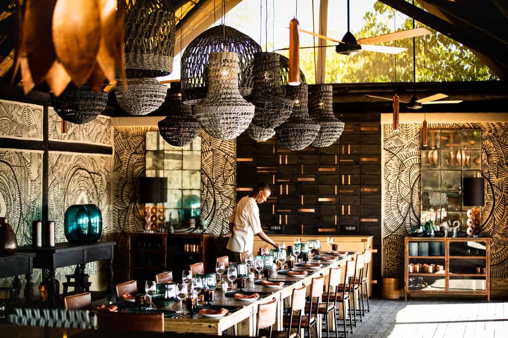 The nine suites at King’s Pool are all homely yet lavish. With high, thatched ceilings, they feel airy and spacious and each has a large four-poster, mini lounge area and an ensuite bathroom. Outside, you’ve got a large deck with a private plunge pool, loungers and a sala (a shaded area with lots of squashy cushions), all of which are prime spots from which to admire the beautiful views and wildlife. Throughout, the splashes of blue and turquoise remind you of your watery location – in this case, literally on the edge of the lagoon.
