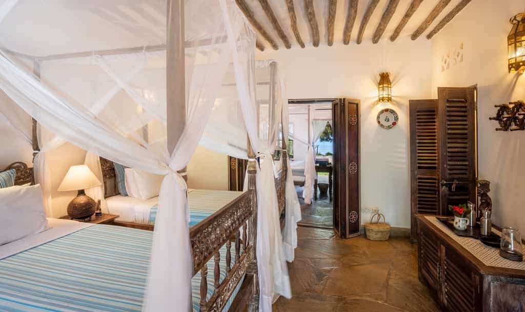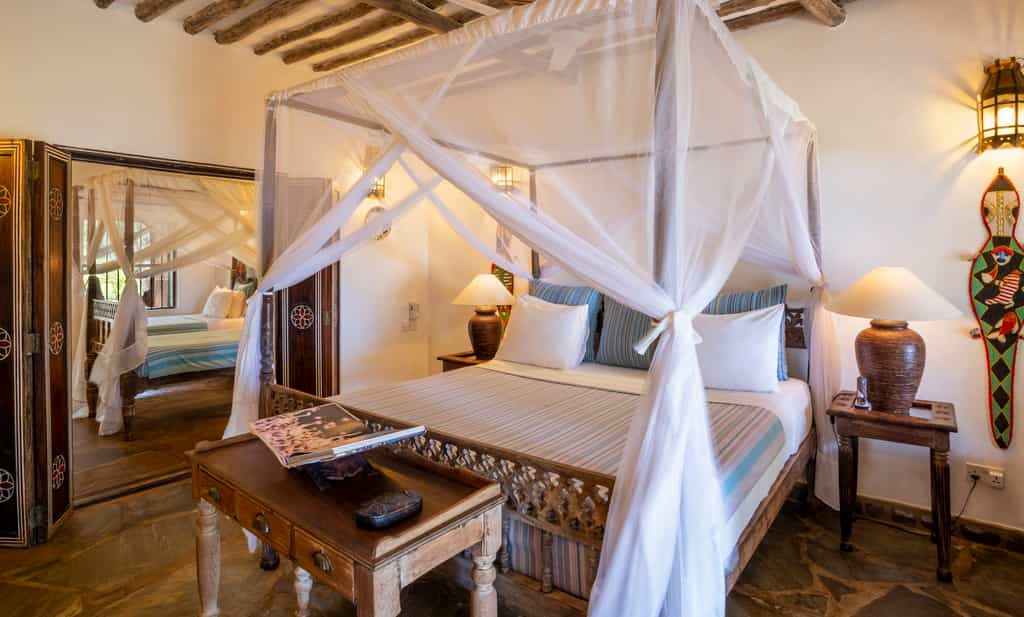 With seven suites, three cottages, a beach house and the Big Mama Taa Villa to choose from, there's no shortage of accommodation options. The most economical rooms are in the main house – one with en-suite facilities and two sharing a bathroom. The cottages sleep two to four, the double-storey beach house is perfect for a family, and villa is the jewel in the crown, with six en-suite bedrooms, a central lounge and wraparound porch. Kinondo Kwetu is just right!