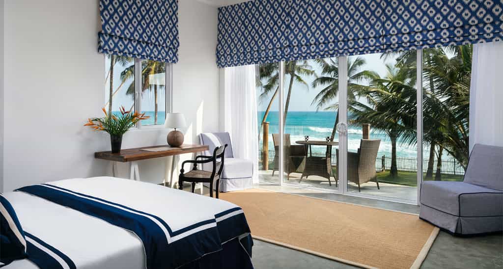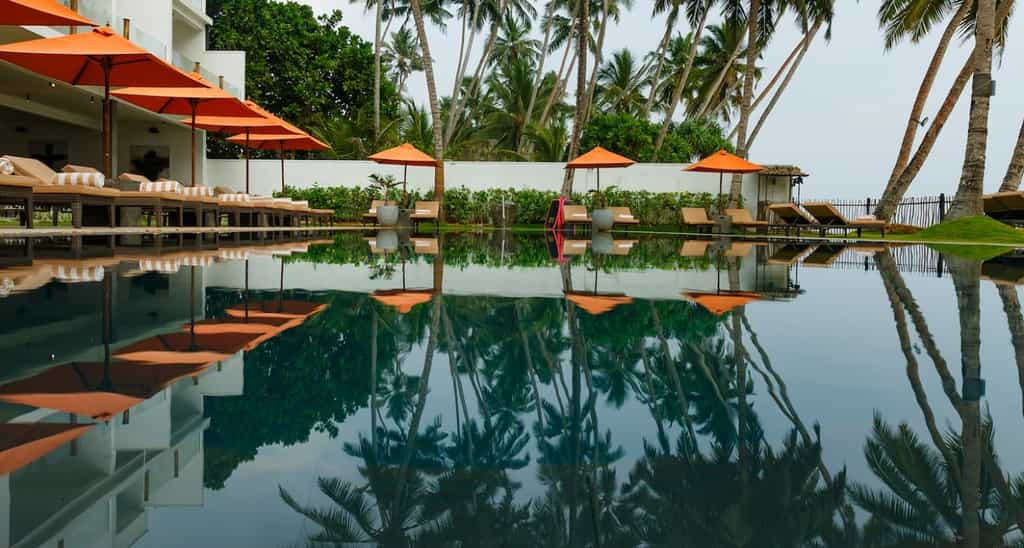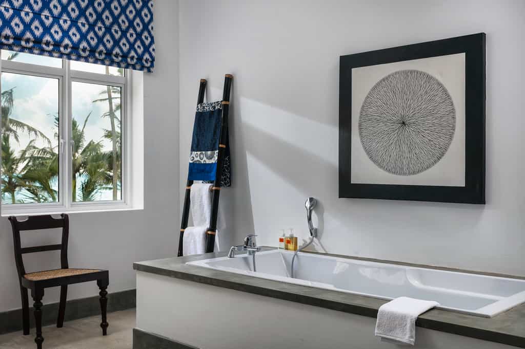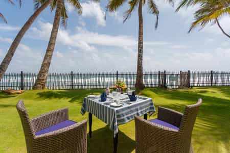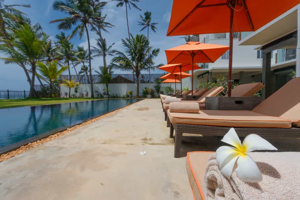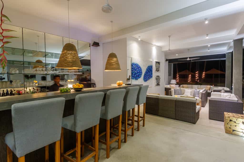 Out front, there is a pristine, 20-metre swimming pool flanked by a bevy of neon orange umbrellas and loungers. The Bamboo restaurant is fittingly decorated in palm motifs, and serves a range of seafood, barbecue and curry dishes. You could even enjoy a private dinner on the beach! The bar is a casual, warm place to enjoy a drink in between activities and the shimmering cerulean ocean is visible from most of the airy lounges.