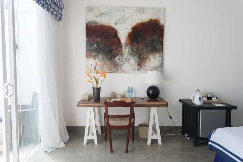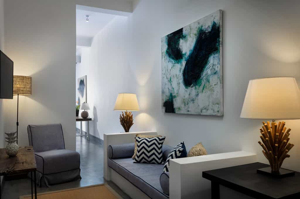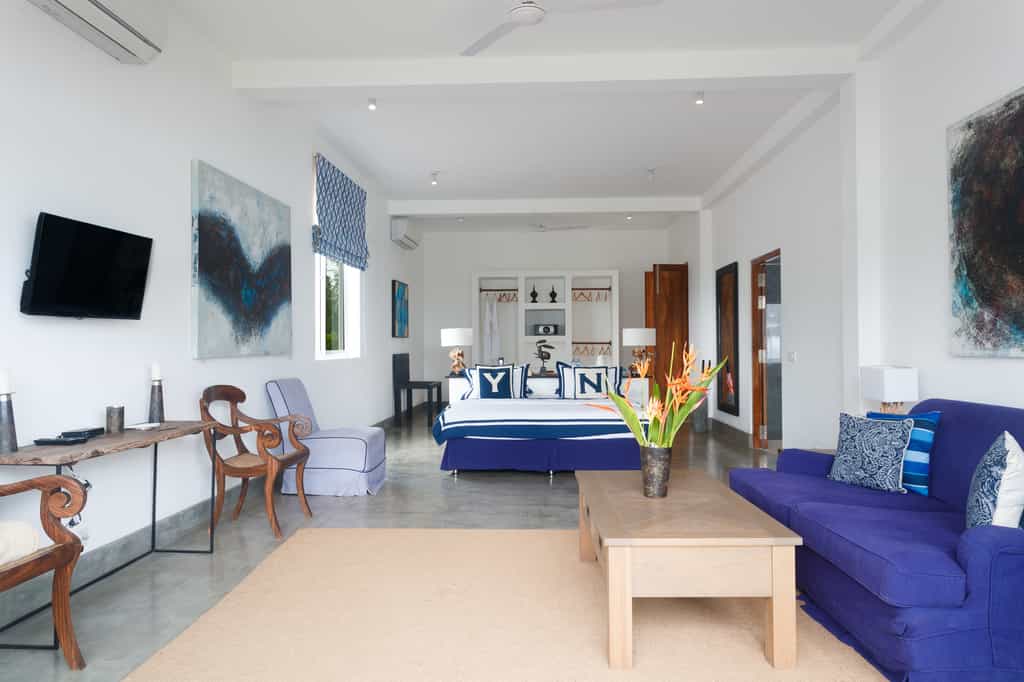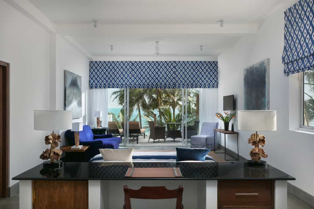 KK Beach has just 10 rooms, each opening onto a balcony with cafe seating and killer ocean views. Every room is furnished with driftwood-style desks, woven lampshades and King-sized beds draped in white and blue Egyptian cotton. The bathrooms are spotless and spacious with a deep tub and walk-in shower. The largest suites feature a lounge area (which can also be used as an additional bedroom or indeed, an in-room massage...), twin sun beds and wide, floor-to-ceiling windows.