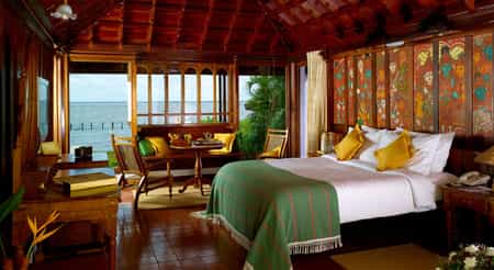 Once the gift from a king, a re-assembled mansion is where you'll find the Ettukettu restaurant, which serves an array of Chinese, continental and traditional Keralan cuisine. On the banks of the lake, the Vembanad seafood bar has a lovely rustic feel and the traditional Thattukada tea shop serves freshly fried snacks and chai. You can also enjoy private dining at the pool pavillion at the water's edge. Take a dip in the lakeside infinity pool (with jacuzzi!) and relax with Ayurvedic therapies at the Ayurmana spa.