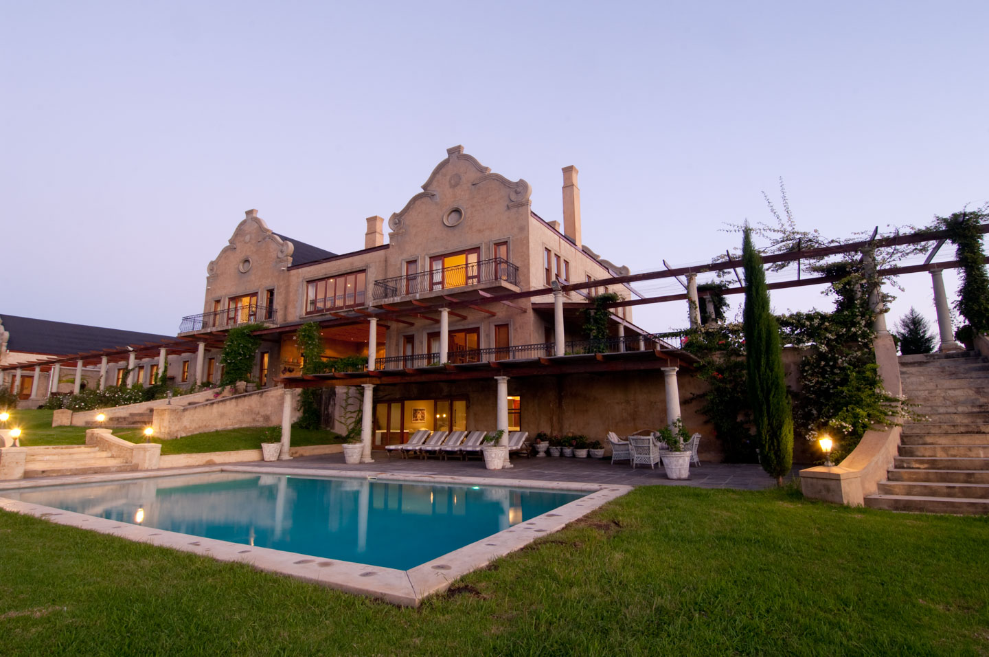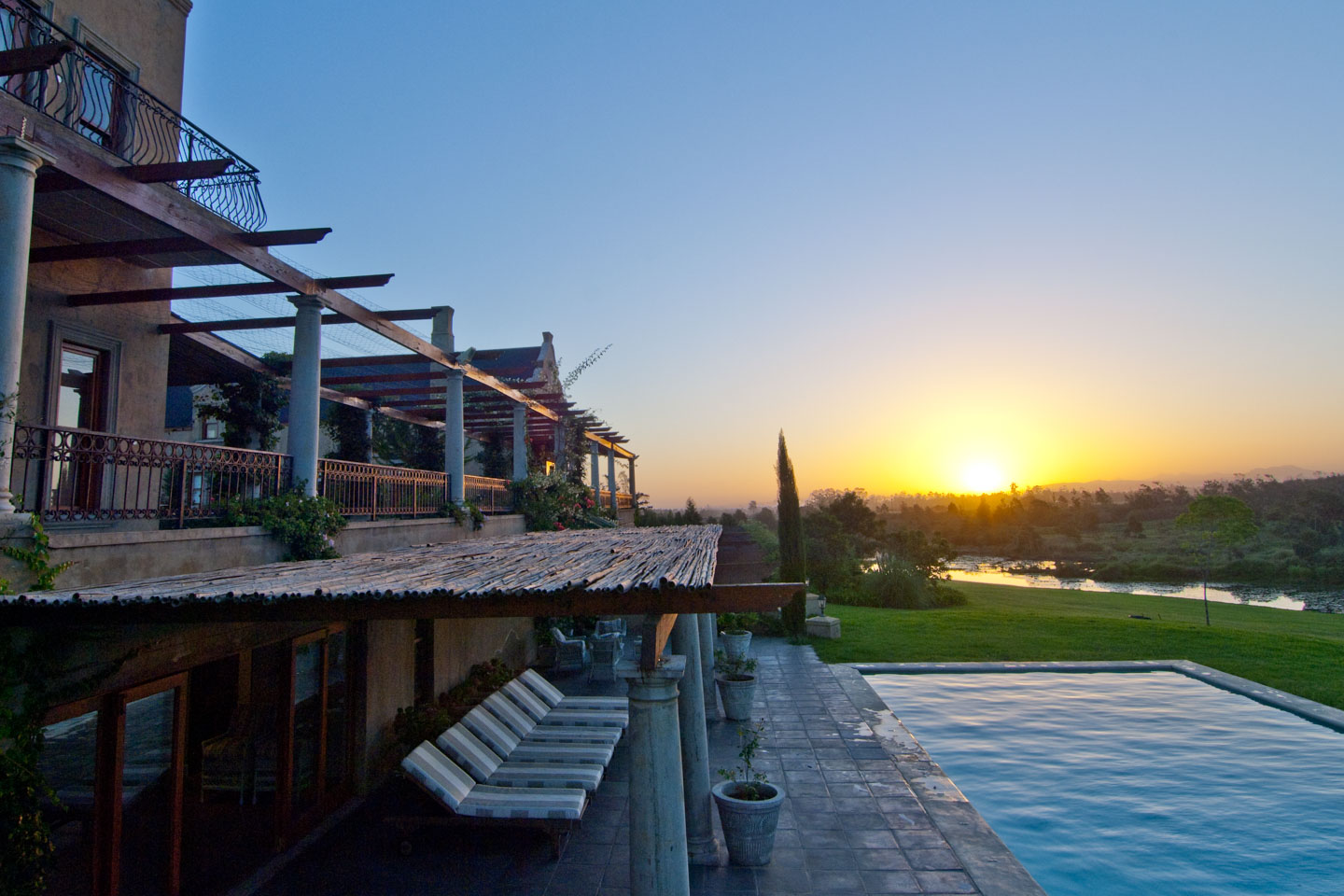 This eight-bedroom villa has five rooms in the main house, and another three in the adjoining west wing. All interior finishes are simply beautiful, and you'll find plush carpets, grand four posters and the softest of seating in all rooms. And there's the stunning countryside views from just about every corner of the house - enjoy them from your private patio, glass of wine in hand.