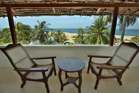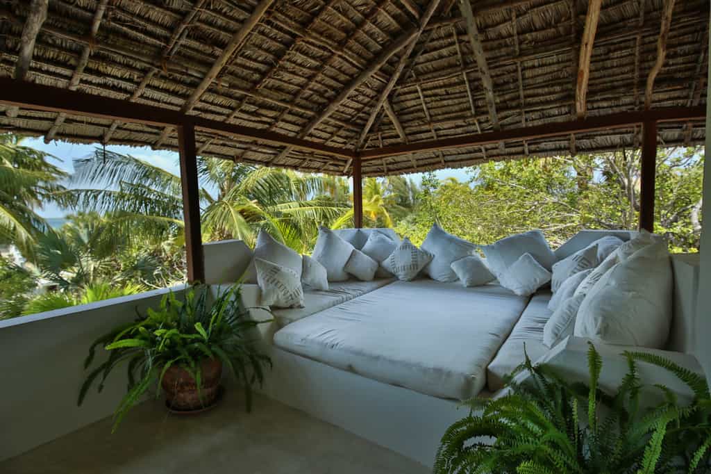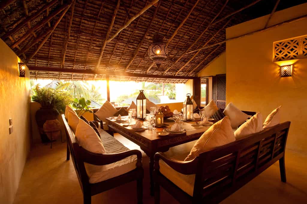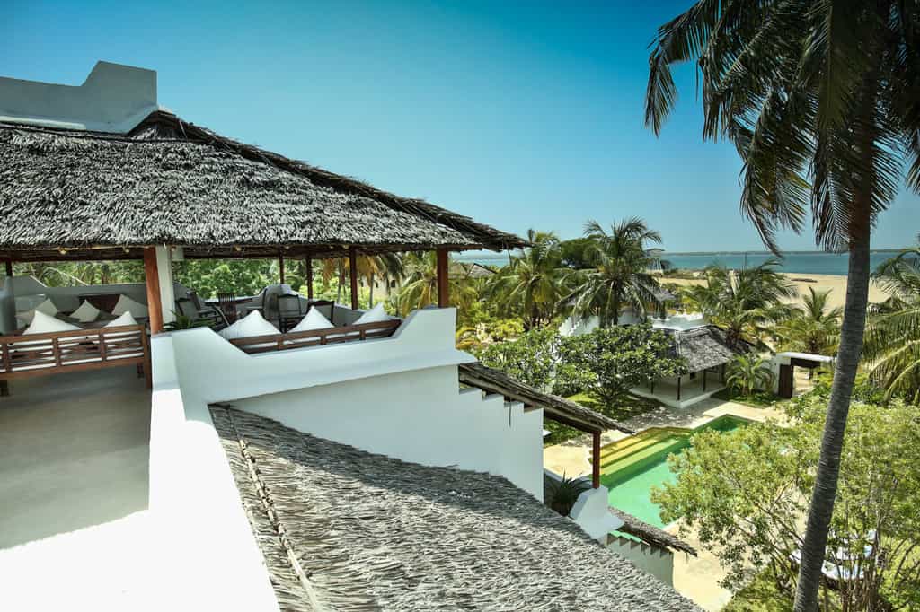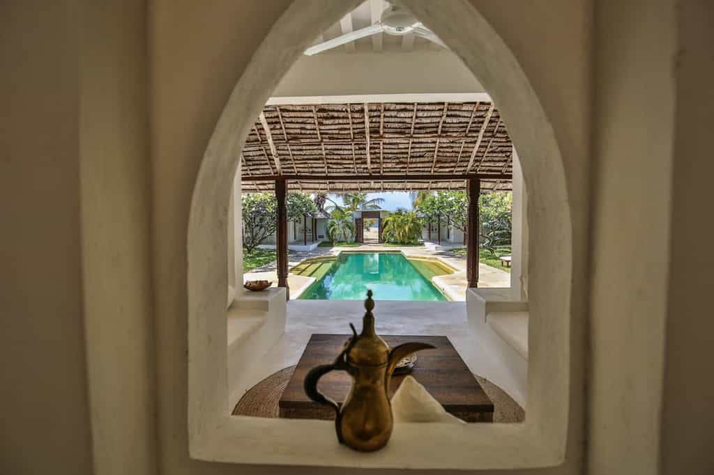 Kusini is a spacious villa with plenty of areas that lend themselves to al fresco dining or relaxing. There are two large verandas: one on the ground level overlooking the pool, and one on the top (third) level to take advantage of sea and sunset views. The central lounge area is built in traditional style, with white washed walls, high wooden beam ceilings and sunken seating covered in plush cushions. Leading off from this is the large, frangipani-lined swimming pool - the natural focal point of the house and a perfect gathering area for parties.