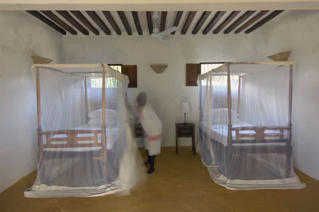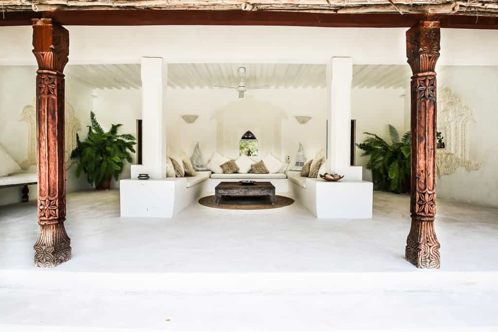 Sleeping 8 guests, Kusini Villa has a wonderful sense of space and privacy, with private verandas, views over the ocean and comfortable, couch-filled nooks to tuck oneself into. The first floor has a stunning master bedroom wing with an ensuite bathroom, traditional sunken bath and two balconies. The ground floor has two spacious ensuite rooms, and outside are a further two ensuite guest bedrooms with private verandas. All have Lamu-style, built in beds and traditional furnishings.