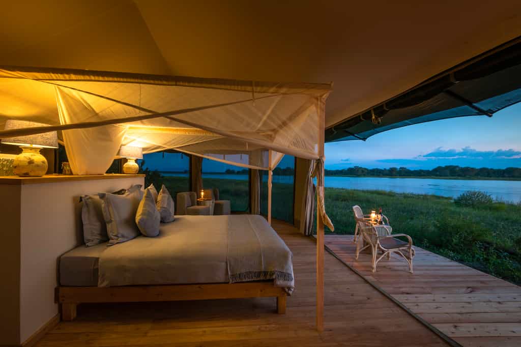 The four spacious tents (two twin, one king and one family tent) are set apart from each other, so each feels like a private oasis. The added creature comforts of an environmentally friendly cooling system keeps the mosquitoes at bay during the hot summer months. The inviting bathtub in the en-suite bathroom and the outdoor shower ensure that you maintain your cool. Relax on your private deck with a cold drink and enjoy those iconic Liwonde views.