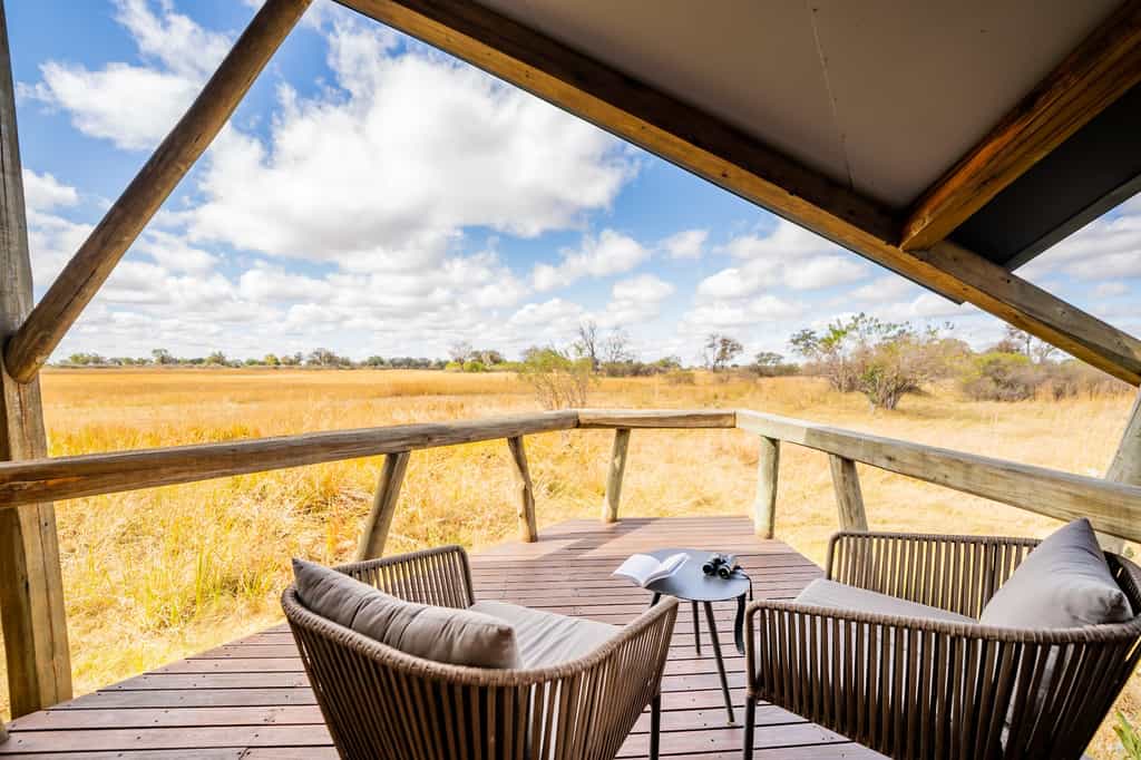 Built on raised decks, 10 large double or twin suites face the pan and its constant stream of animals and birds. The tents have a striking modern design, with elegant understated decor, and all of the traditional safari style that you’d expect of Botswana’s most luxurious camps (plus en-suite bathrooms with indoor and outdoor showers).The camp is unfenced, so keep your wits about you and don’t wander to your tent after dinner without an escort!
