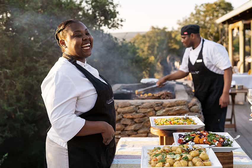 A portion of the nightly rate at Kwandwe is used as a Conservation & Community Levy. These funds are used to equally support reserve conservation and community development. Over and above the levy, 35% of the accommodation rate paid by guests is allocated towards Kwandwe’s 5 pillars of conservation. Guests engage in activities such as planting spekboom, participating in rhino conservation, visiting community projects, supporting wildlife expansion, and participating in biodiversity research with academic institutions. A contribution of $36 per guest, which is included in the nightly rate, goes towards the above goals.