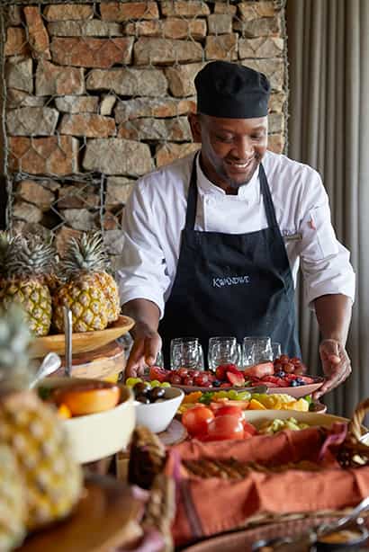 The six suites are effortlessly sleek and sexy and with enormous king-size beds atop shiny floors and entire glass walls interspersed in the wood panelling. For some afternoon down-time, slink outside to the deck and take in the view from your private pool or cosy up in a slouchy armchair in the living room. Bathrooms are enormous and feature powerful rain showers and free-standing tubs. And just so you don’t forget that you really are on safari, there are outdoor showers with a view too.