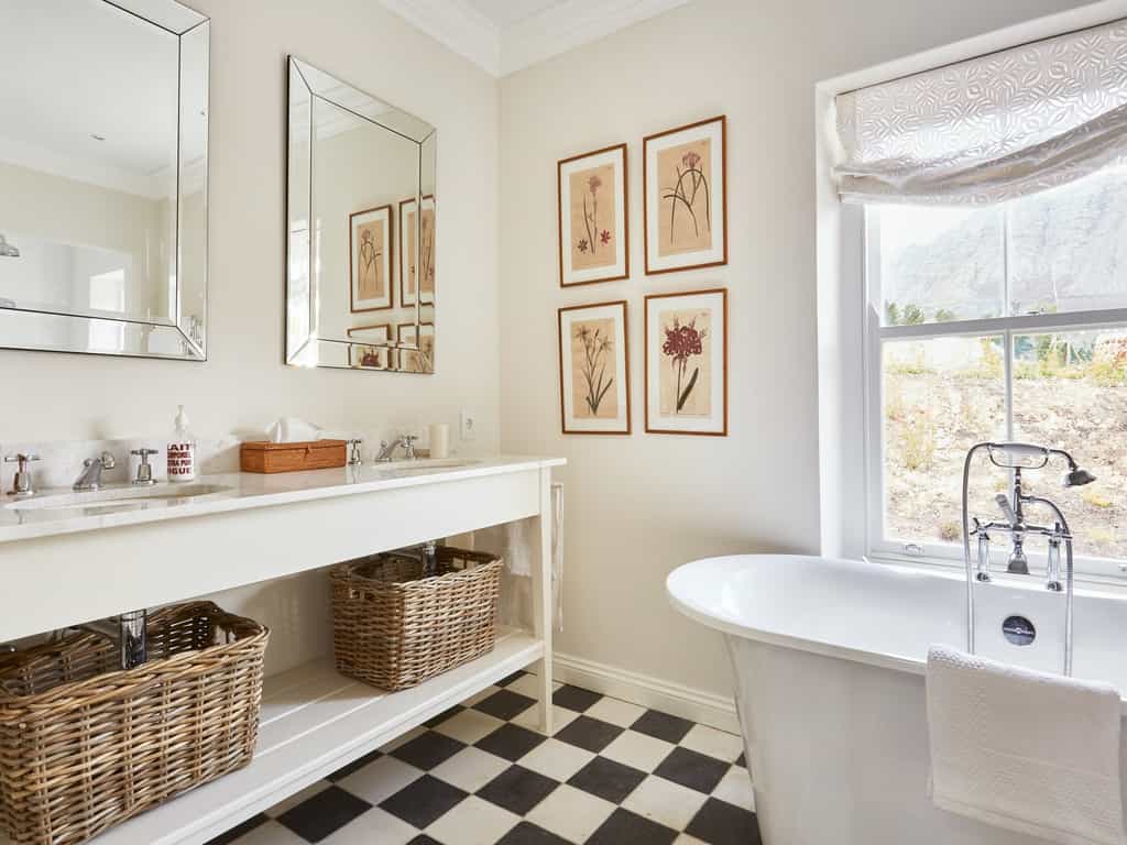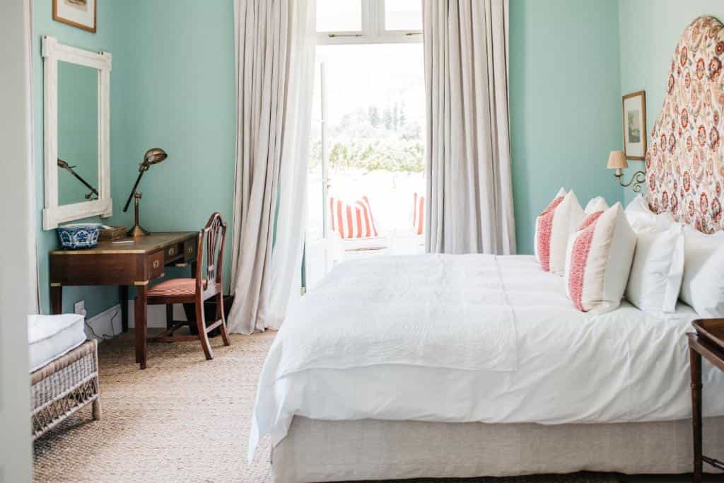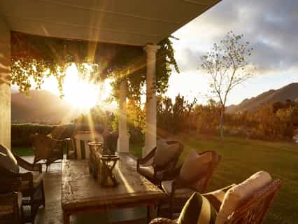 In the main house, you'll find a cosy bar to see to your sundowners, as well as a lovely restaurant, which serves farm-to-table dishes - the bobotie is certainly a favourite. The interiors also tell a little of South Africa's history, with delicate South East Asian murals adorning the walls. For an afternoon siesta or tea, the veranda provides padded wicker chairs and incredible mountain views. And outside, enjoy a walk through the pristine vineyard, see the old mill houses, and get lost amongst the ambrosia.