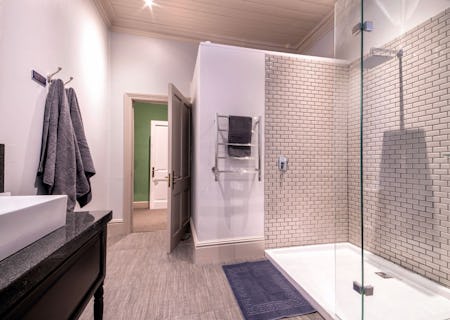 As you enter through the front door, you’ll see the airy breakfast room straight ahead (but breakfast is normally served on the tables outside) and to the right, a sultry, sexy lounge area complete with jewel-coloured velvet sofas, unusual artworks and a bar stocked with Cape Town’s latest artisanal gins. The lush, indigenous gardens hide two swimming pools, both with an abundance of cushy red loungers and fabulous views of the mountains of the valley. For evening drinks and morning coffees, relax on the terrace at the front of the house or take shade under the umbrellas outside the breakfast room.