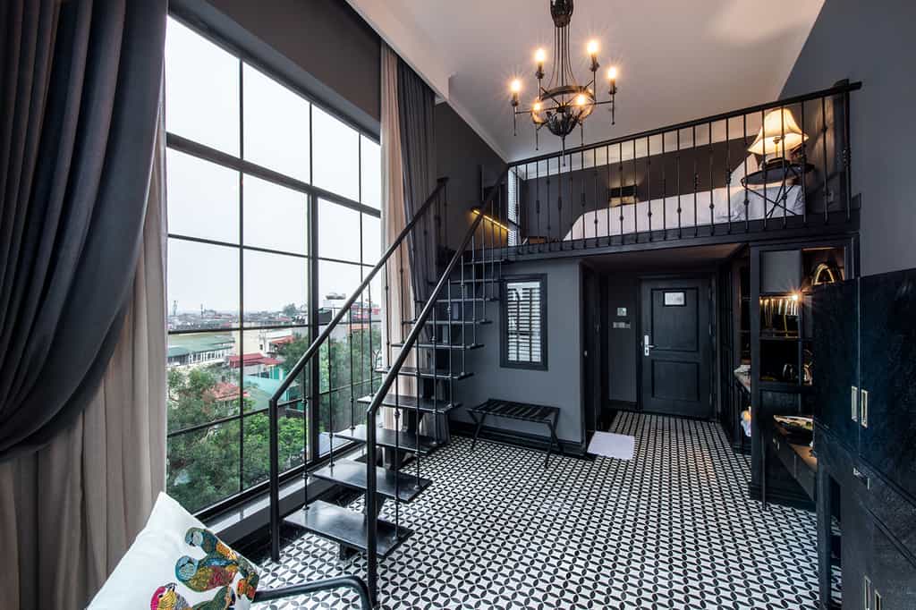 Stepping out of the cacophony of Hang Be Street, La Siesta's lobby is grand and warmly lit with chandeliers. The Cloud Nine restaurant is designed with an Art Deco flourish with plush, high-backed couches, monochrome tiling, and ornate windows offering a 360° view of the city. Here, you'll enjoy a menu of authentic Vietnamese dishes (try the Hanoi barbecued pork) and international fare. Visit La Spa for a four-hands massage or herbal bath before heading to the roof for an epic sunset view and Stairway to Heaven cocktail.