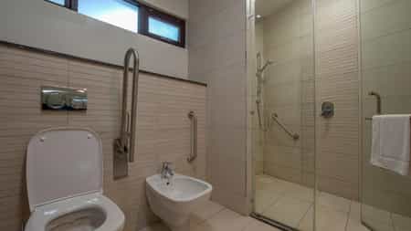 The grounds are a haven for giraffe, zebra, waterbuck and monkeys, which you'll often pass on your way to and from your room.