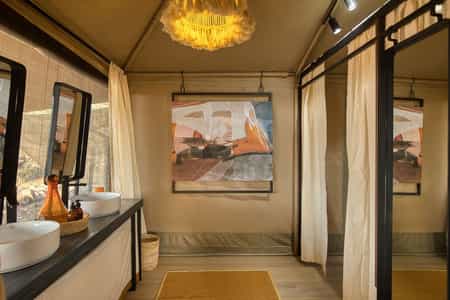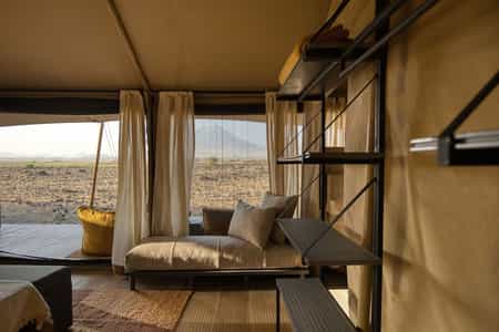 The bedouin tent is very appealing with its colourful kilims and deep daybeds with African-print pillows. Relax under the canvas tent, order a chilled drink from the bar and let your bones rest. You will be tired from either a waterfall or volcano trek for sure. Views across the grasslands may include some zebra, wildebeest, ostrich or camels who are known to meander through. There’s a demarcated natural swimming pool and a pool-area chill out zone.