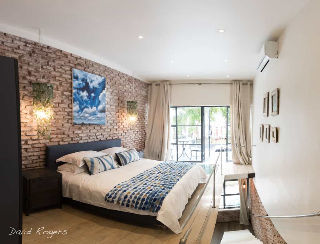 The six individually-styled rooms stretch out from the main area, overlooking the gardens, and all are a lesson in clean, elegant design, with polished black floors and walls, exposed brickwork and plenty of geometric fittings and fixtures. Bathrooms are open plan, but with private rain shower and toilet, and there's a sunken bath tub in the centre of each room. Garden suites have private outdoor terraces but all rooms have a mini, indoor seating area. If you're staying for a few nights, book one of the fully-equipped apartments.