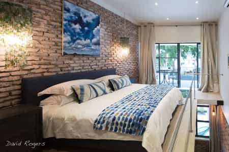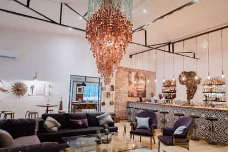 It's hard to miss the sleek, white lines and the contemporary tiled roof of the hotel, and the exterior design sets the tone for what's to come... Inside, you'll find airy, high ceilings and exposed beams, patterned wallpaper adorned with striking black and white photographs, and lots of Afro-chic furnishings thrown in for good measure. The restaurant feels modern and fresh, with food to match, whilst the bar is buzzing and always lively. The expansive gardens are tranquil and the swimming pool and loungers, glittery and enticing.