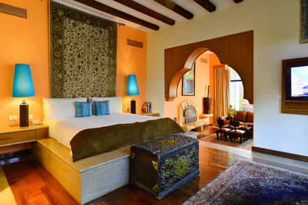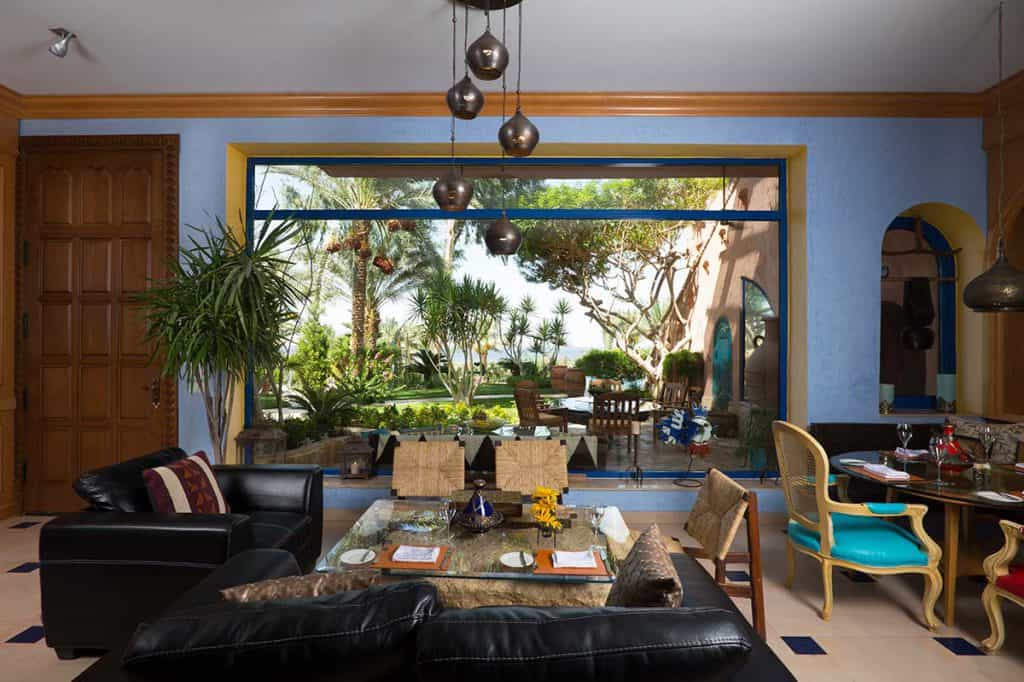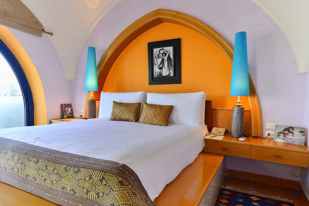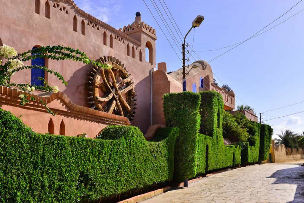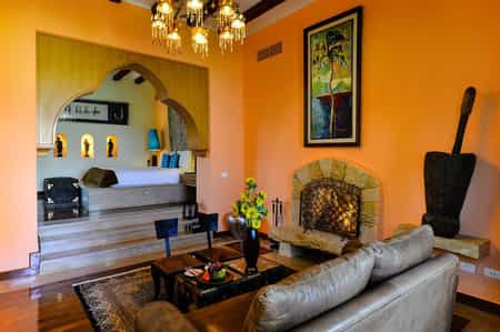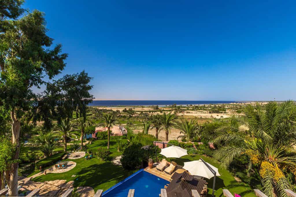 Decorated with items from the owner's private collection, Lazib Inn's 15 suites are fitted with tasseled, vintage rugs, wood-burning fireplaces, and King-sized platform beds topped with 800 thread count Egyptian cotton. All rooms are individually designed, but every suite is bold and artistic with a combination of art and mod furnishings. The bathrooms have a large jetted tub, rainfall shower, and double vanity counters, whilst outside, there are pretty balconies with flowering vines growing along the pillars and sensational views of Lake Qarun.