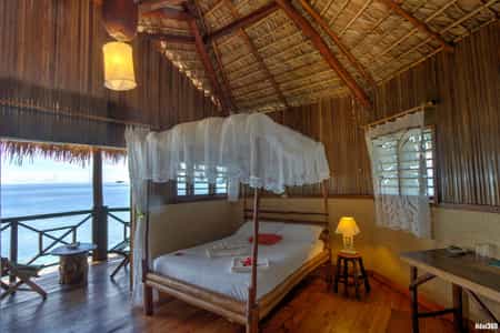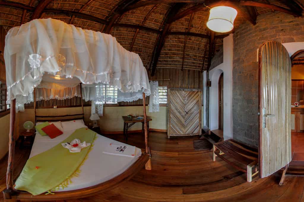 Le Maki Lodge has five stilted, sea-facing bungalows with extraordinary views across the ocean to Nosy Be and the eastern coast of Nosy Komba. The rooms are spacious, with warm hardwood floors, large netted beds, an en-suite shower and toilet and a small private terrace that could, in all truth, be a little larger. The bungalows are simple, but perfectly clean and adequate for a comfortable stay. There's electricity, mobile phone coverage and internet connectivity in the restaurant and bungalows.
