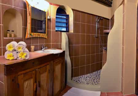 The shaggy-thatched, open-sided dining area, bar and terrace are where guests gather to chat and eat, although you can choose to have your meals delivered to your bungalow. The food is imaginative and very good (opt for full board as breakfast is not included in the rates). Lunch and dinner include delicious Malagasy and Creole specialities that are too good to miss. This property is rated as one of the best value inns in Ampangorina.