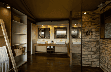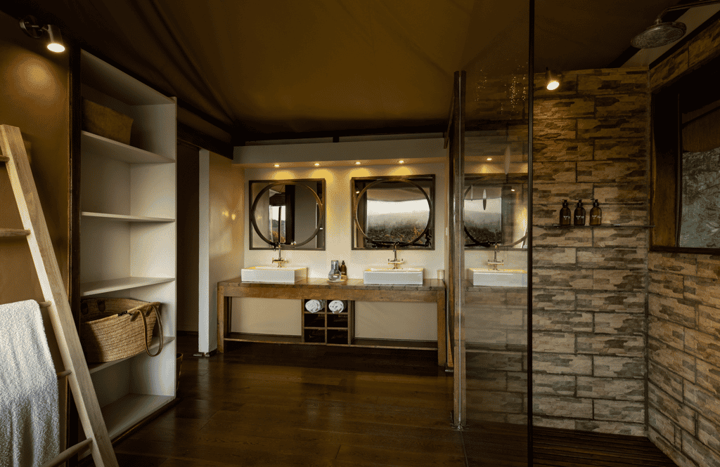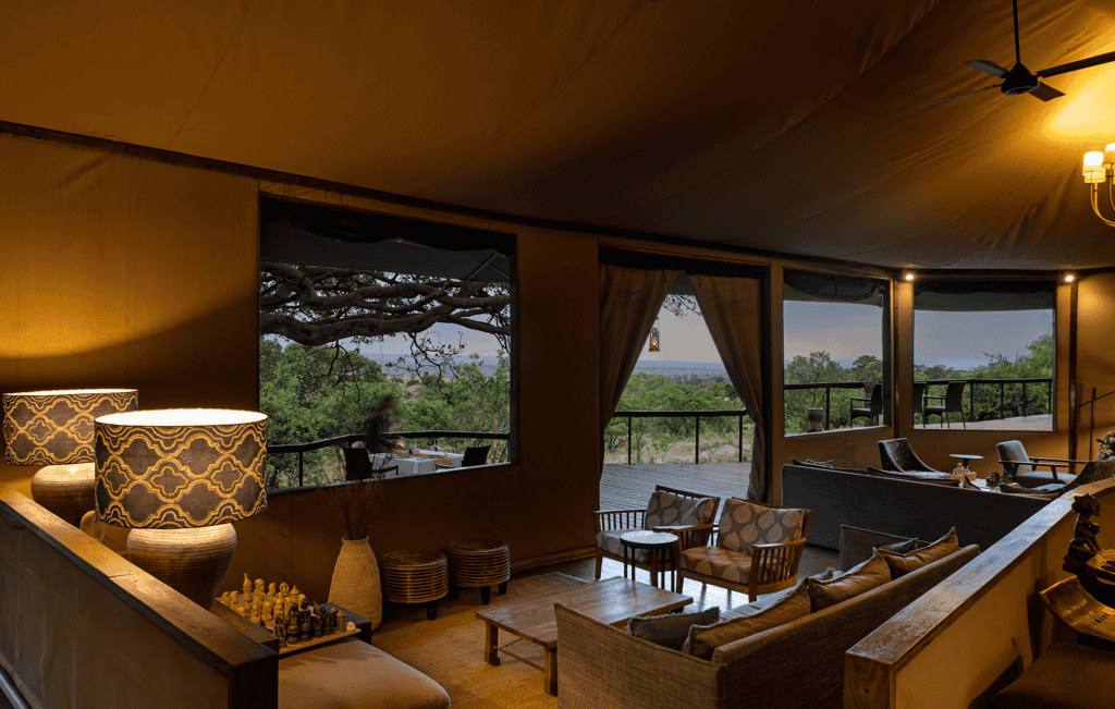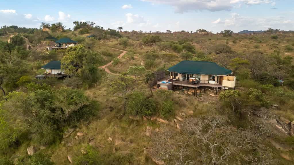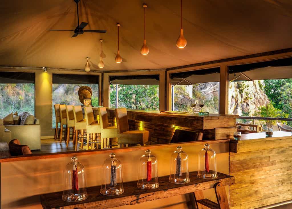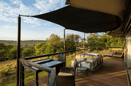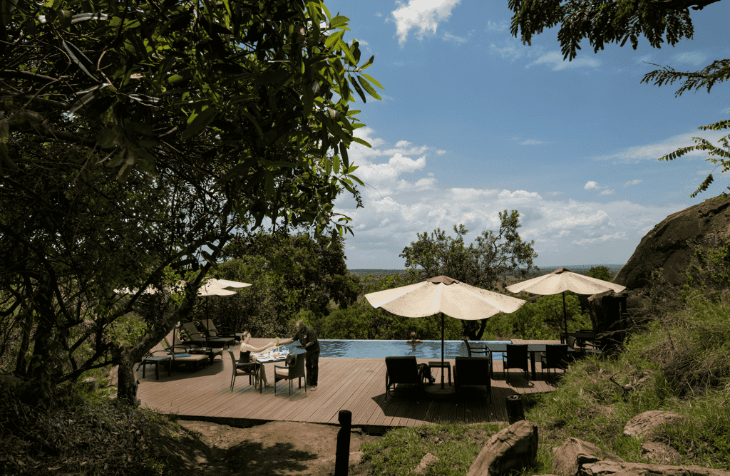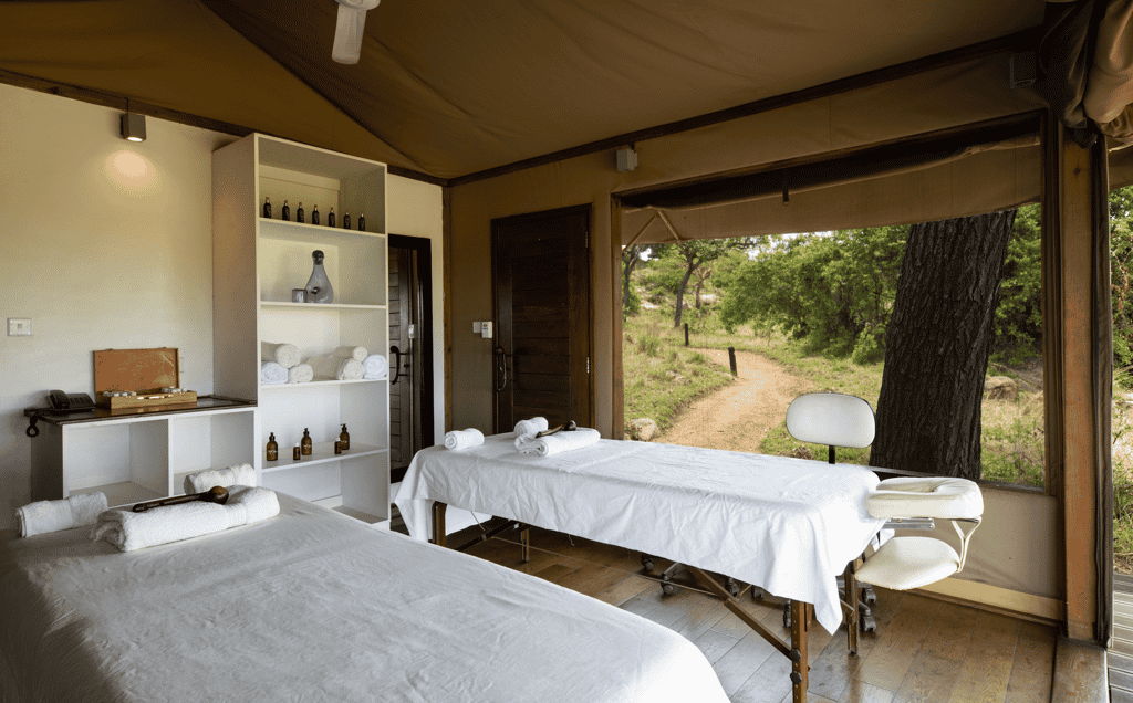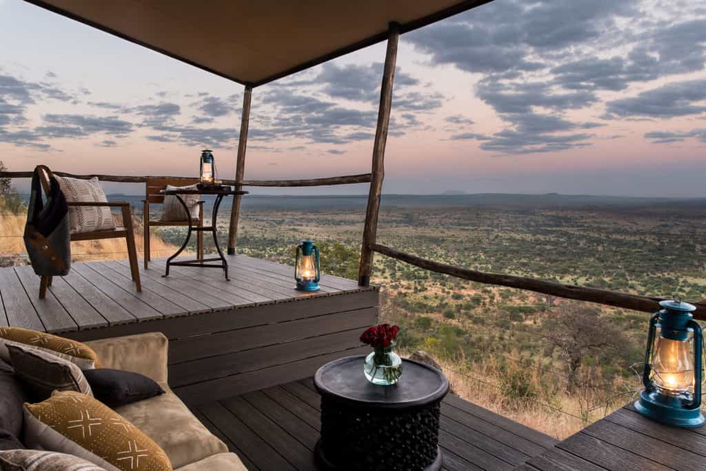 The three-tented communal area is dominated by dramatic hills and boulders, with extraordinary views from the bar, sitting and dining areas, swimming pool and decks. Guests can enjoy fresh, imaginative meals in camp or in the bush. Afternoon tea is served before your game drive and, at sunset, you can enjoy cocktails on a koppie overlooking the Isuria escarpment. There's no need to forego your beauty/massage treatments – a separate tent in the wild houses the peaceful Melengali Spa.