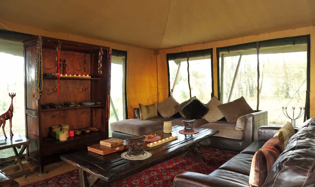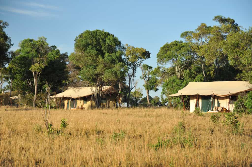 Twelve spacious tents on wooden platforms are set in lines of six on either side of the mess tent, one of which can accommodate a family of five. Interiors are fairly simple, with warm earthy tones brightened by colourful throws and cushions. Canvas window panels can be rolled up to catch the breeze, and there’s a covered veranda in front - a great spot to relax between game drives. Ensuite bathrooms have bucket showers, with hot water on request.