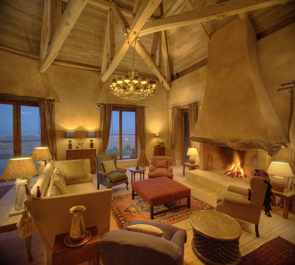 At once rustic and grand, Lengishu is a truly lovely structure of stone, thatch and compacted earth walls. Every detail has been carefully considered, from the orientation of each window to the placement of every pool umbrella. At the heart of the open-plan dining room/lounge is a built-in hearth, with a collection of sofas and chairs. A long dining table seats everyone comfortably (the chefs are professionals). Outside, a pool with a view sits on the edge of the hillside.