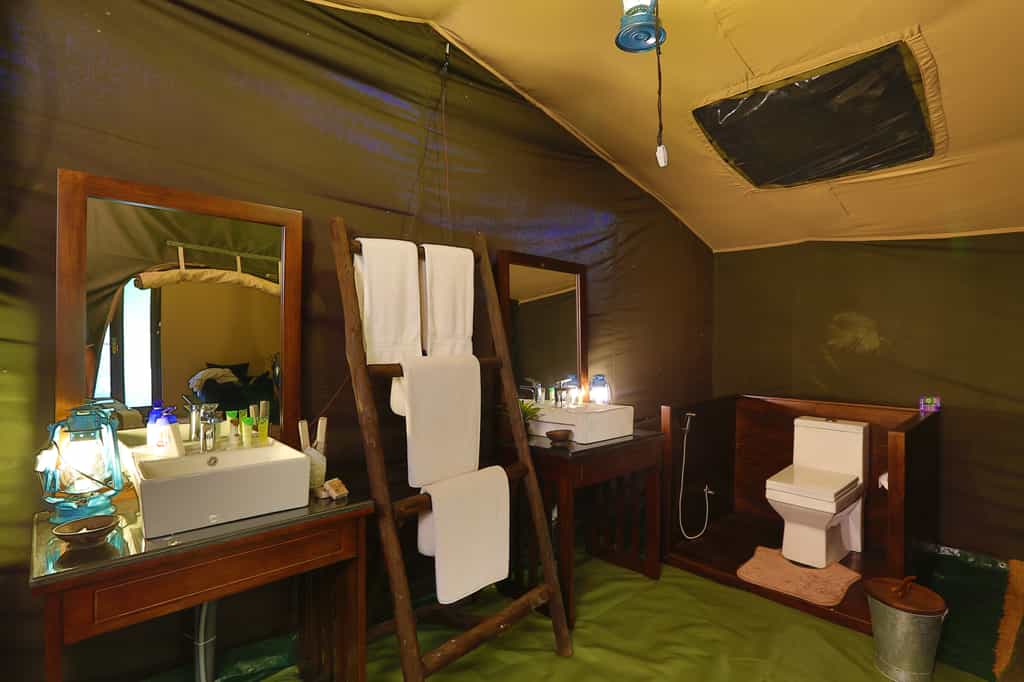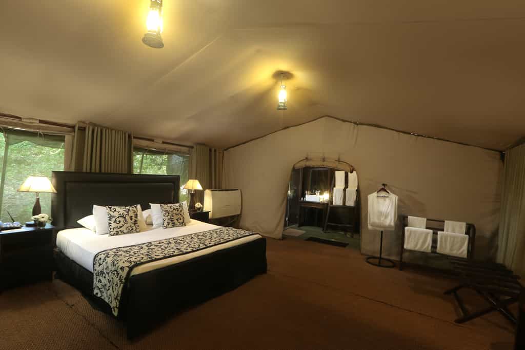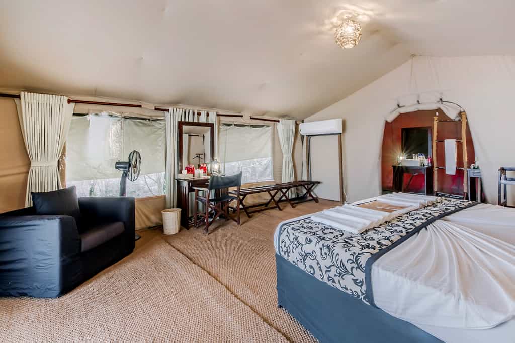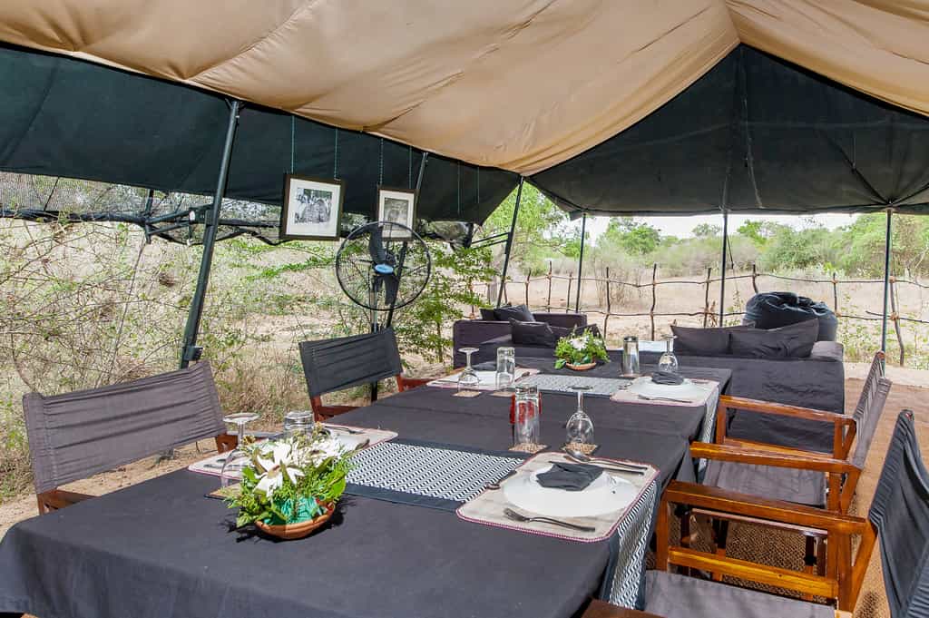 The camp has two tent variations, which sleep up to three people. In shades of grey and cream, both tents have queen size (or twin) beds, a dressing table, flushable bush toilets and a sit-out. The Leopard Trails Suites have an extra dash of luxury, decorated in dark wooden furnishings and framed scenes of the park. They enjoy a mini fridge, cosy lounge area and rustic, white-tiled shower - the deluxe tents have an outdoor shower. Other amenities include plenty of charging points, mozzie repellent and luggage racks.