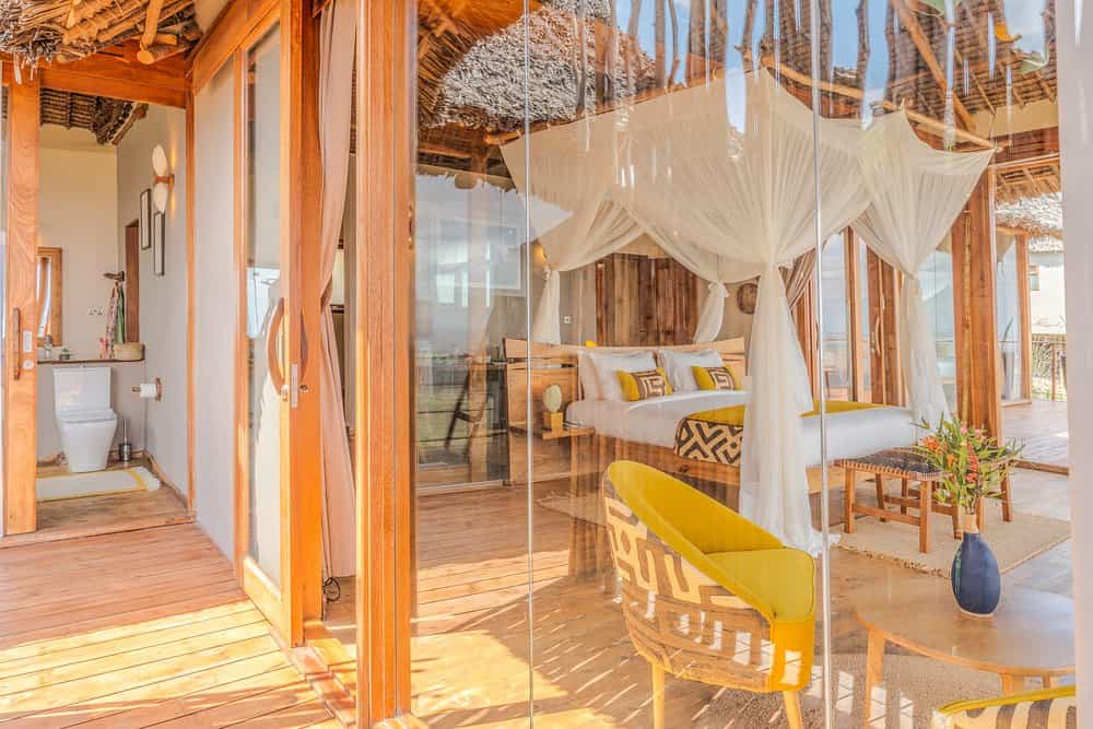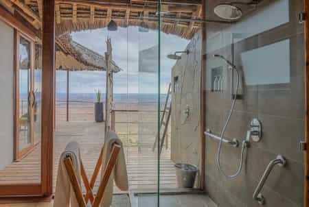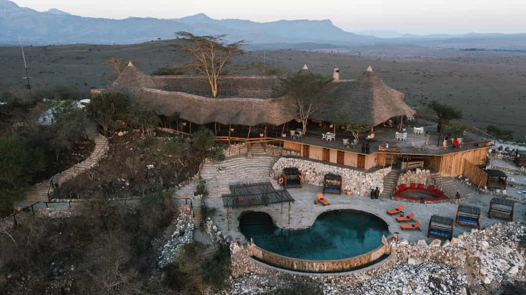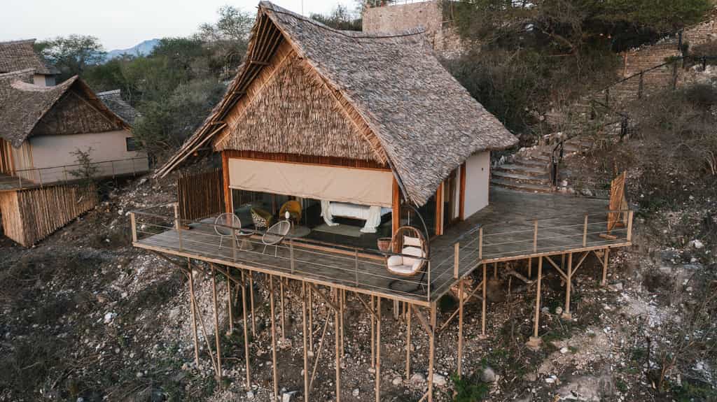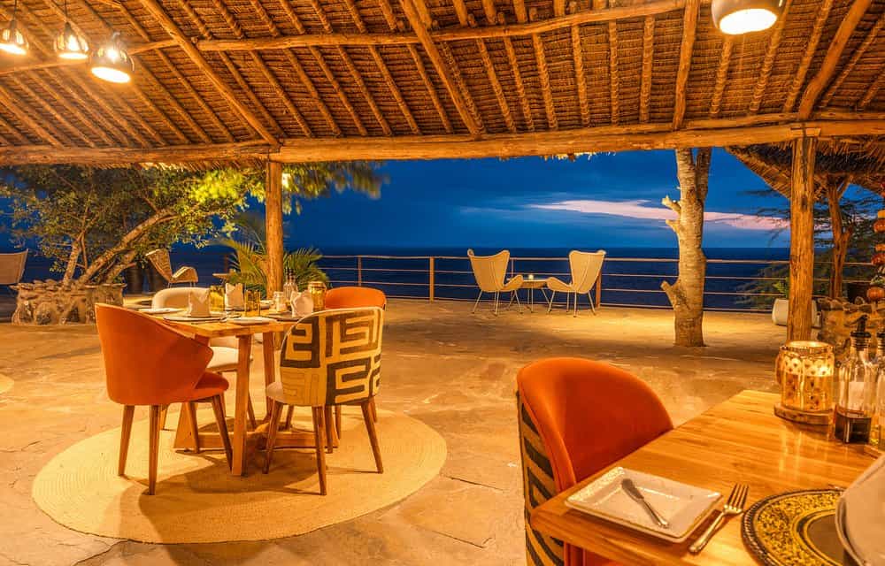 Rustic walkways lead you from the reception into the main area, where it's all about the views (and the G'nTs). The dining room, bar and lounge sit beneath high thatched roofs, surrounded by floor-to-ceiling glass doors, which open onto spacious terraces. There's a lovely curio shop as you enter, and further down the ridge is the westerly-facing sundowner terrace, furnished with plenty of tables, chairs and a fire pit. Dinner is often served here in the open air.