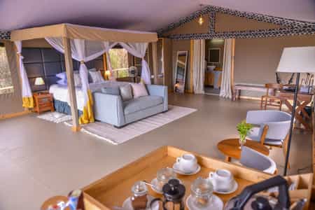 Little Zebra Plains is an intimate luxury tented safari camp located on the bend of Talek River with amazing views of the open plains of the Mara and the Talek river.
