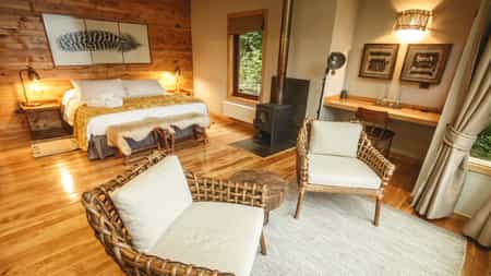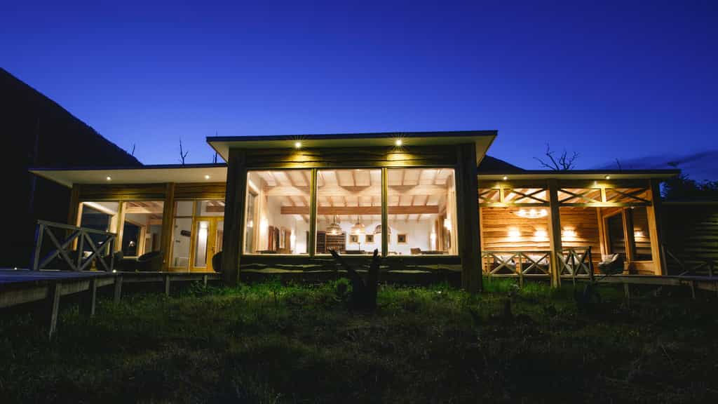 The lodge itself is built to celebrate the surroundings while minimising its environmental impact. As well as the raised pathways that slow down soil erosion, the lodge generates its own clean energy through hydroelectric turbines.