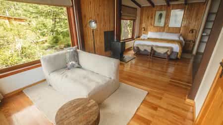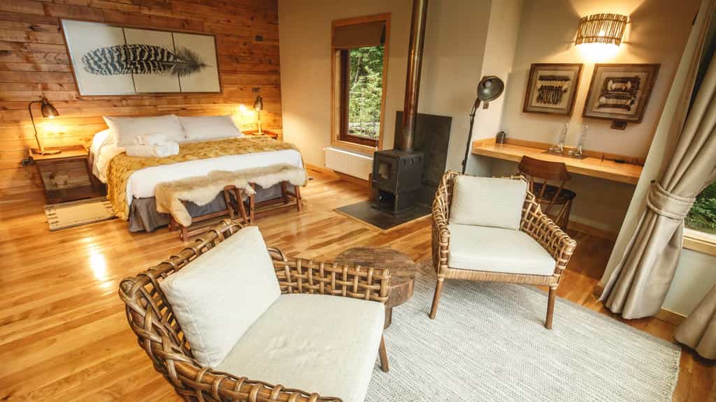 At Lodge Deseado, you will find the ultimate get-away, completely immersed in the vibrant wilderness on the southern side of Tierra del Fuego. Your cabin enjoys large picture windows with postcard-views of the magical forests beyond. All cabins have central heating and a fireplace to keep you cozy on chilly winter evenings. This is the perfect place for exploring the natural wonders of the region and you'll never want to leave your tranquil cabin, a true corner of paradise.