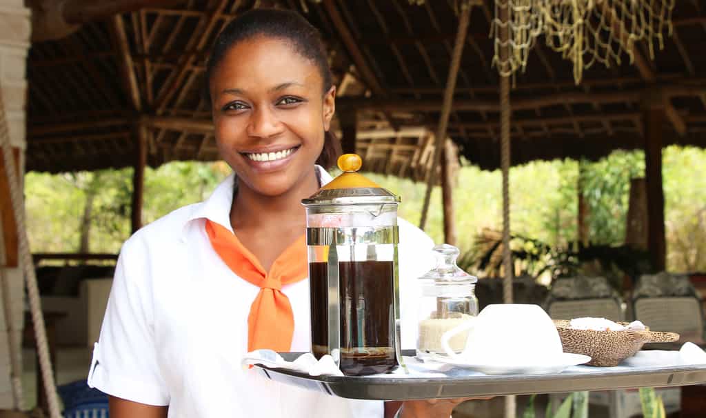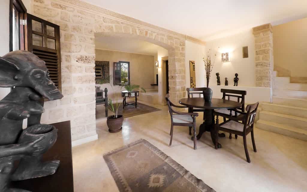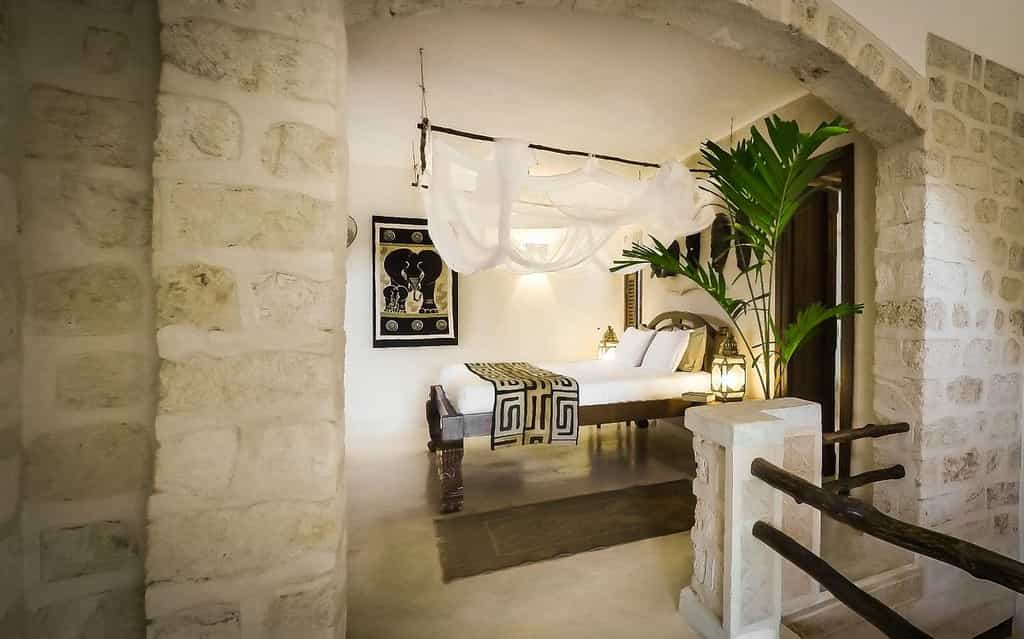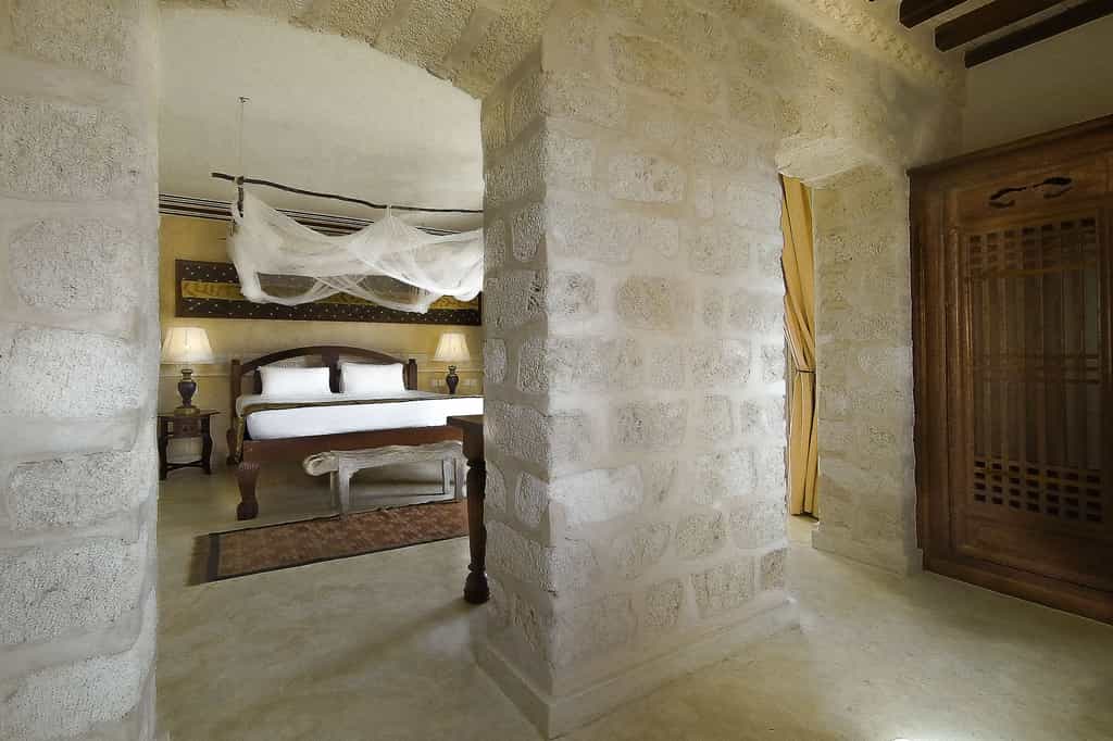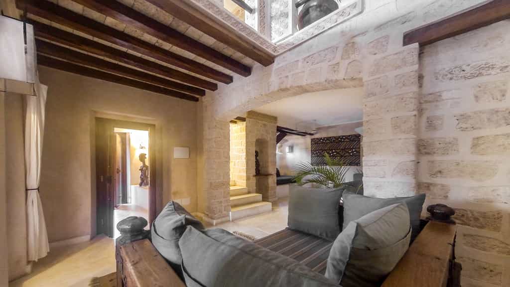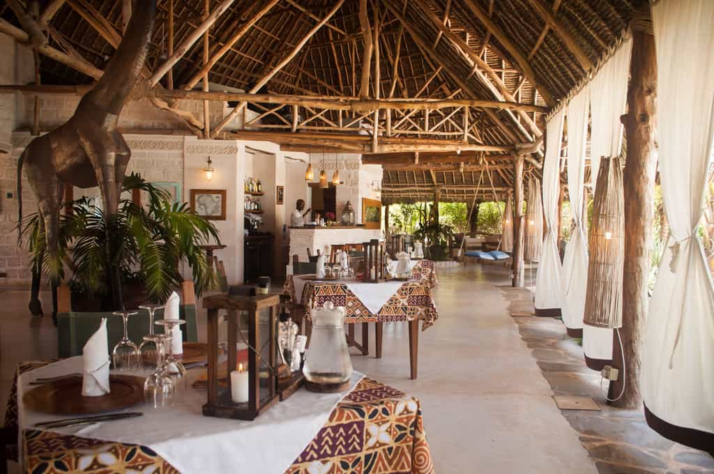 The eight beautiful rooms are simple but beautiful, and all feature creamy white walls, wooden beams and plenty of exposed brick work. Chunky wooden furnishings are carved by local artisans and the bright Kenyan textiles and fabrics are homely and fun. The two tower suites, high up in the turrets, are spacious and bright, whilst the lower suites are spread over two levels and have private patios or terraces. Bathrooms are clean and unfussy, with a clever design that allows for natural airflow throughout.