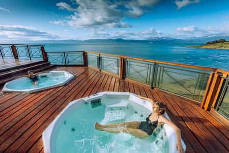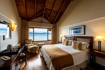 All 54 rooms are simple but tasteful and come equipped with individual heat control and tea and coffee stations for something warm before bed. Most come with a Queen-sized bed, and views are either mountain range (the lower categories) or towards the Beagle Channel - worth the small extra cost! There's also a junior suite with a splendid private balcony, but the senior suite goes all out with its exclusive deck, inviting jacuzzi and enormous bed in front of the even larger picture windows.