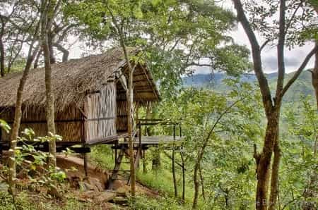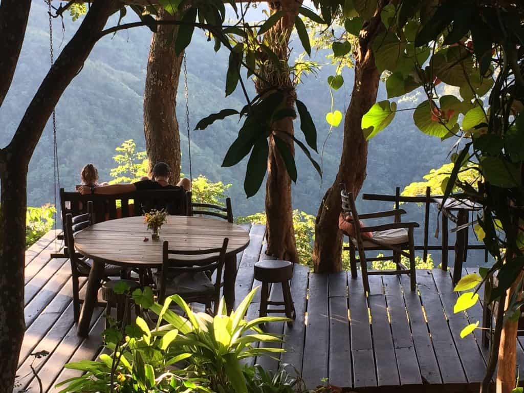 The main deck, built on stilts on the side of a steep cliff, feels like it’s on the edge of the world - in a good way. It's home to the restaurant and bar, shaded by a combination of thatch, umbrellas and a leafy canopy. The kitchen serves up only the freshest ingredients (prepared on a wood stove), and of course a brew of home-grown coffee. There's a lovely fireplace to keep you warm on chilly evenings, and a cool hanging bench where you can shoot the breeze. All the woodwork is made by one of the owners, Auke, and his love for this place and his craft truly shines through.
