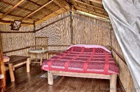 A variety of simple, but cosy accommodation is available at Lukwe. There are several thatched chalets built of reeds, as well as a few newer canvas tents under reed shelters. All have a double bed, small cupboard and a deck at the front. Bathrooms are communal and basic - showers heated by donkey boilers and composting toilets - but are kept spotlessly clean. Besides a cup of tea, coffee or freshly squeezed orange juice brought to you in the morning, there are no other amenities to speak of. There is also a leafy campsite where you can pitch your own tent for a much-reduced rate, accompanied by a well-equipped kitchen.