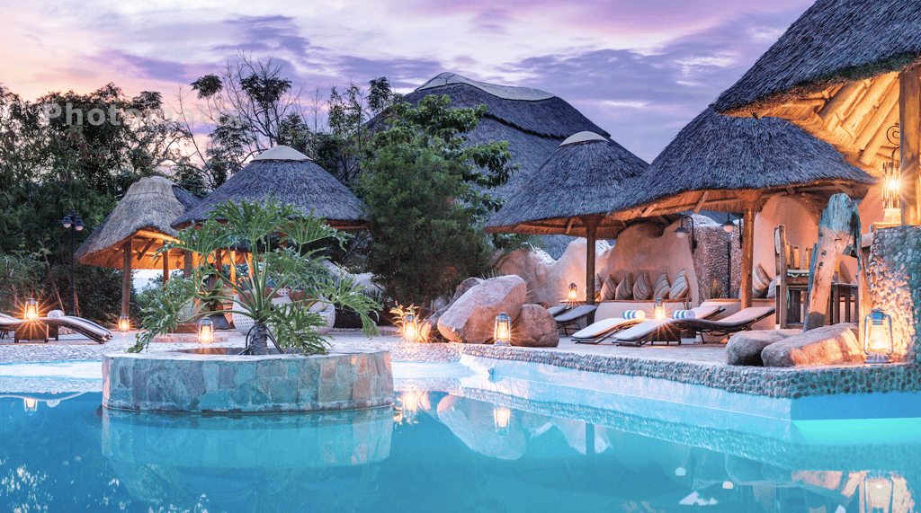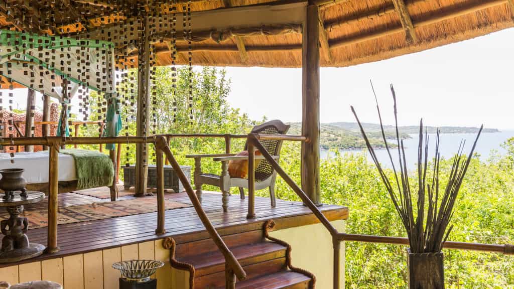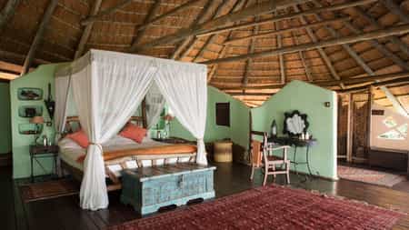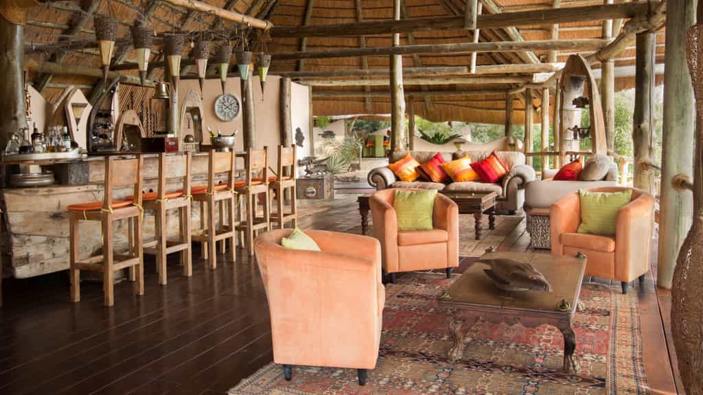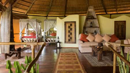 Lupita's main lounge and dining area boasts panoramic views of the natural surrounds. Cheerful hues of oranges, reds and greens offset against high ceilinged thatch and open sides. A traditional hull of a wooden dhow serves as the romantically atmospheric bar, lit by Arabic lanterns and decorated with eclectic artefacts. Comfortable lounge chairs are the perfect vantage points for taking in the surrounds. An outdoor pool tucked further behind the main lodge, affords privacy amongst the trees.
