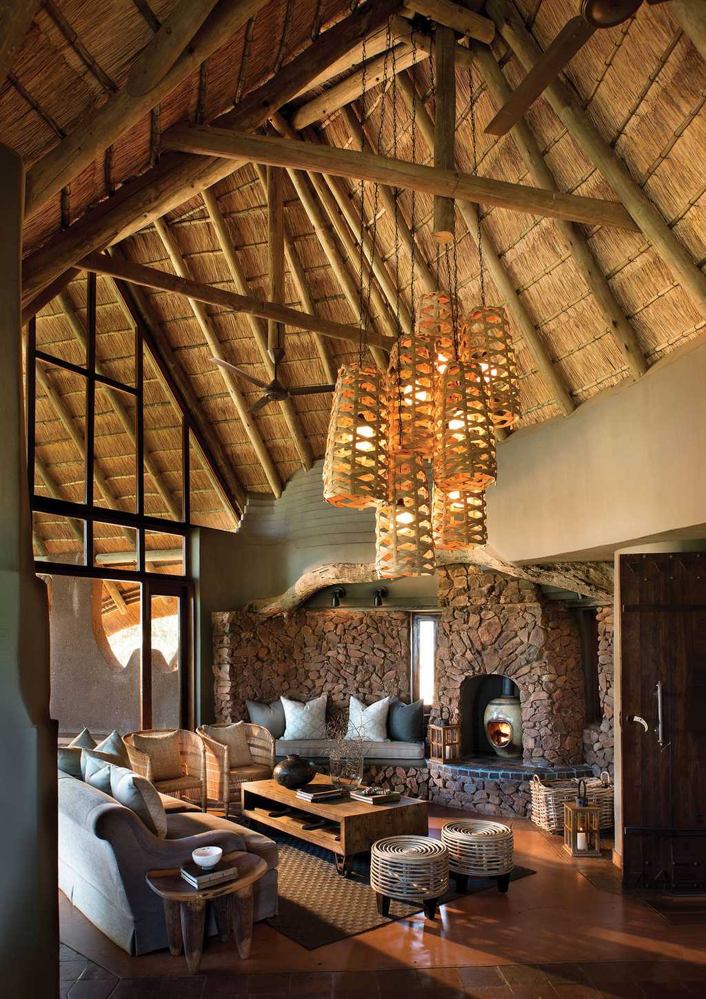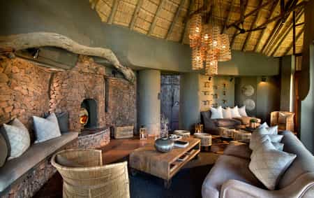 There is an understated elegance to the smart, earth-inspired decor that strikes just the right note between fashionable and discreet. A thatched roof supported by rustic wooden beams (in all their crooked glory) covers the lounge, library and dining area, and the spaces flow out to a wide, open-to-the-sky deck where meals are often served. There's a lovely built-in fireplace for cooler evenings, and plenty of plush seating designed for chatting or settling back with a book from the library.