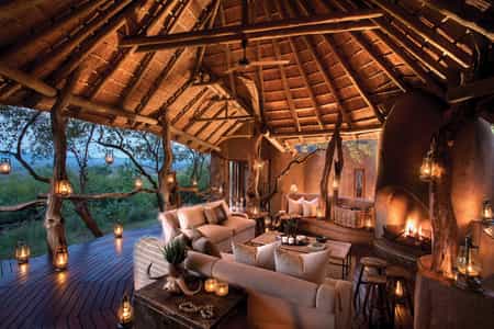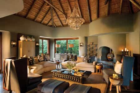The main areas of each of Madikwe's lodges all have an attractive rustic-yet-modern design and are intimate, understated and chic. The central lounges have built-in sofas strewn with pillows, and large wood-burning fireplaces are carved into the walls. Each also makes clever use of stone and wood and foldaway windows or accordion glass doors maximise the views. Meals are often served outside outside on large, shady wrap-around decks that gaze across the tree-line or onto a flood-lit waterhole.