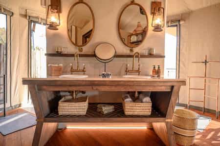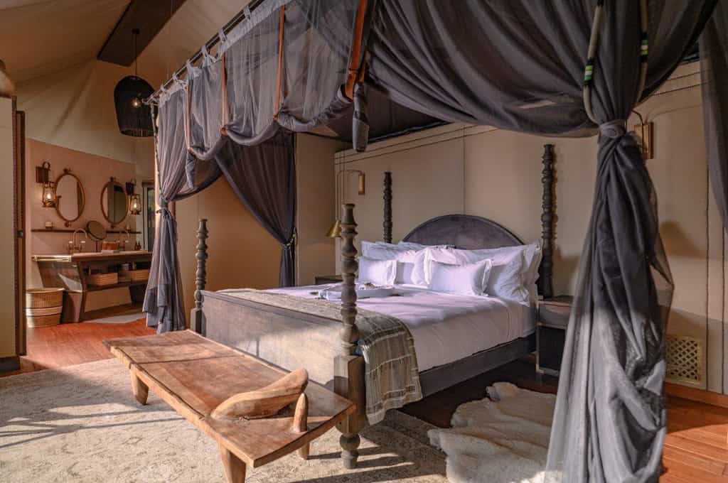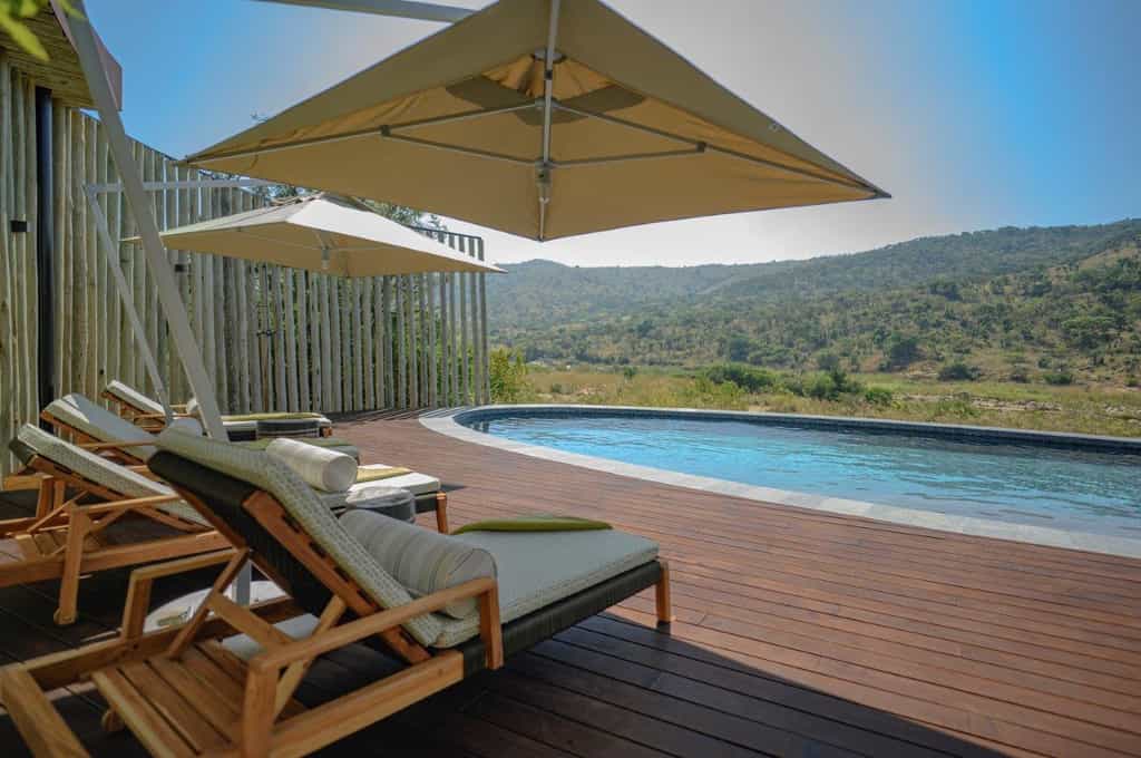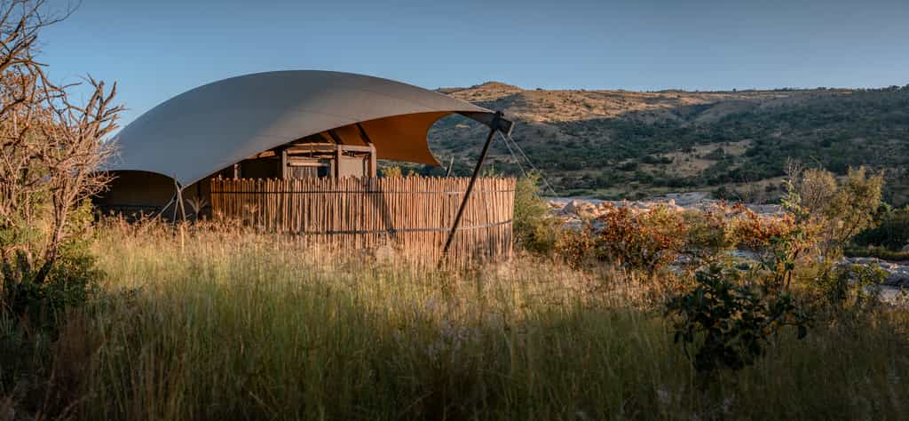 Nestled along the southern bank of the White Umfolozi River, Madwaleni River Lodge offers its guests an exclusive retreat with its luxurious safari tents arranged around a central gathering area housing a restaurant, lounge, and captivating library. The lodge takes its name from the isiZulu phrase meaning “The place of the rock,” paying homage to the picturesque granoliths mountains found in the reserve. With a fusion of sophistication and wilderness, this ultra-luxury tented camp promises a truly remarkable experience. At Madwaleni River Lodge guests can fully immerse themselves in the surrounding natural beauty. The lodge features 12 luxury tents, accommodating a total of 24 guests. Each tent is renowned for its unique design and has received award-winning distinction, offering unrivaled comfort and style.