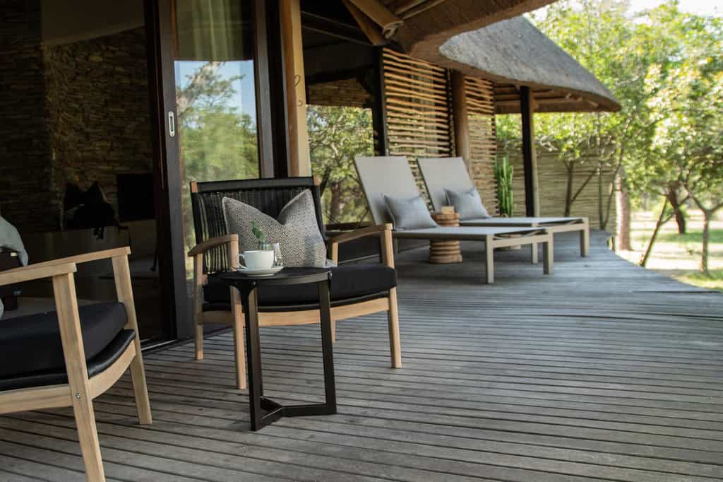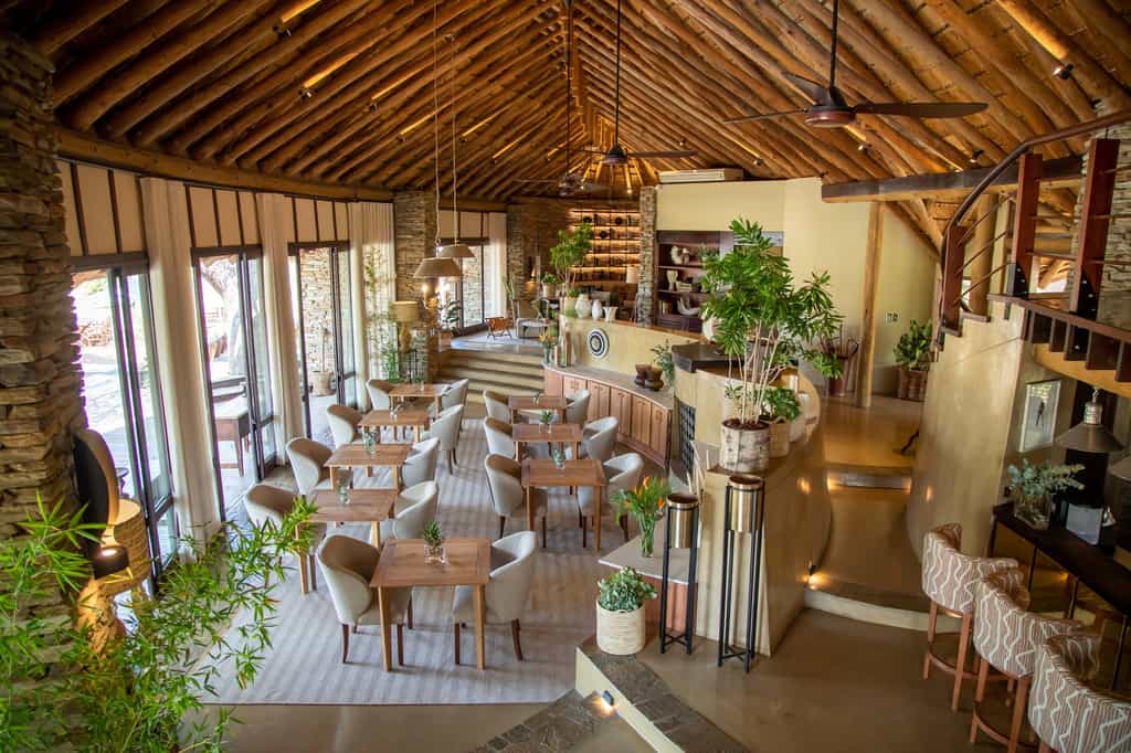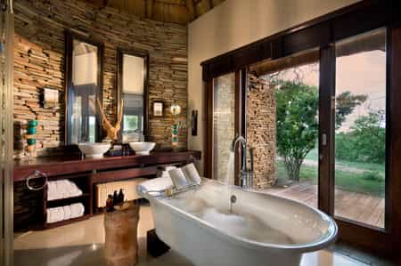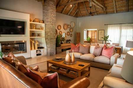 The main lodge has large, comfortable sofas and is the perfect spot to unwind in. It has a superbly situated deck with great views of the dam, where you can watch amazing wildlife scenes take place, enjoy the beauty of your surroundings, or socialise. There is a swimming pool with sun loungers, and a cosy loft which serves as a quiet reading area or TV lounge. The lodge also has a spa, gym and a curio shop.