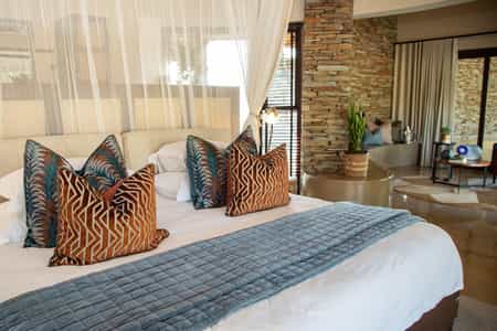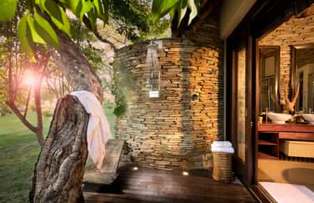 There are seven luxury suites overlooking the magnificent dam. Each has an extra large bed, Nespresso coffee machine, a relaxing lounge area with fireplace, beautiful bathroom with spacious shower and separate bathtub, and a private deck with plenty of loungers. There are two special honeymoon suites too, which are located furthest from the main lodge and offer the most privacy - both come complete with a romantic four-poster and a private plunge pool on the deck.