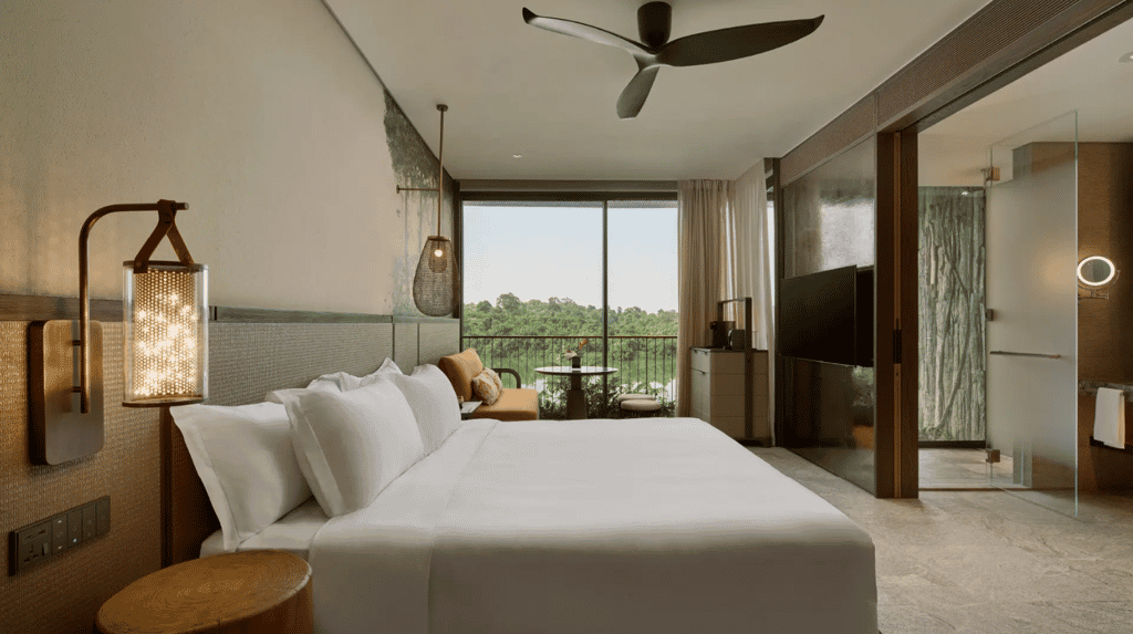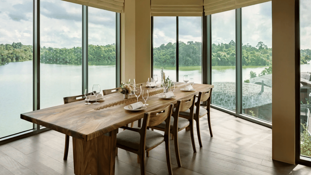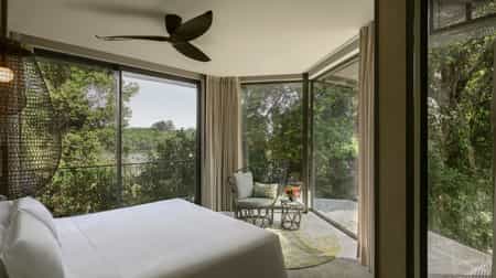 Biophilic design is at the heart of the resort’s architecture, influencing every aspect from programmes to signature amenities and services. Drawing from a legacy of honouring the essence of its location, the resort blends seamlessly with its natural surroundings, offering rooms nestled in lush greenery or overlooking the Upper Seletar Reservoir. The unique layers of the rainforest—from the forest floor to the canopy—are reflected in the room designs, celebrating nature’s rich biodiversity. The resort is nestled within the Mandai Wildlife Reserve, Singapore’s nature and wildlife hotspot, so you'll have renowned zoological parks such as the Singapore Zoo and Rainforest Wild ASIA right on your doorstep.