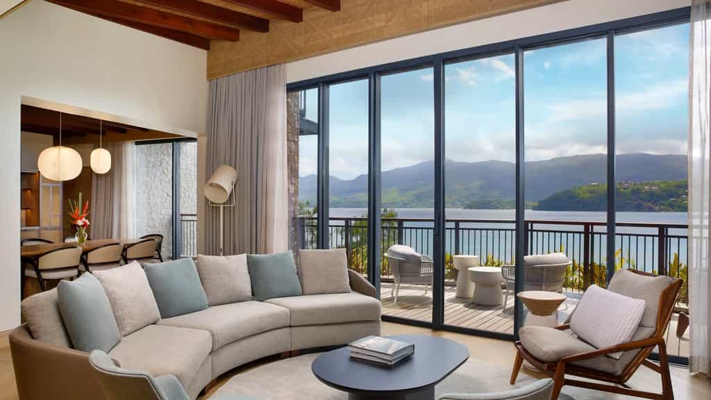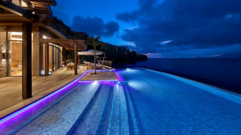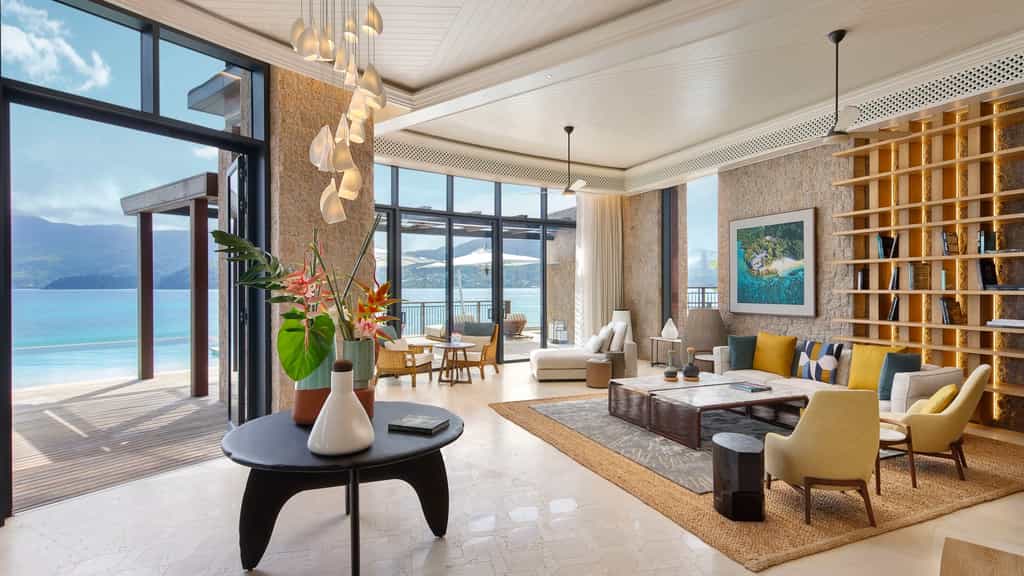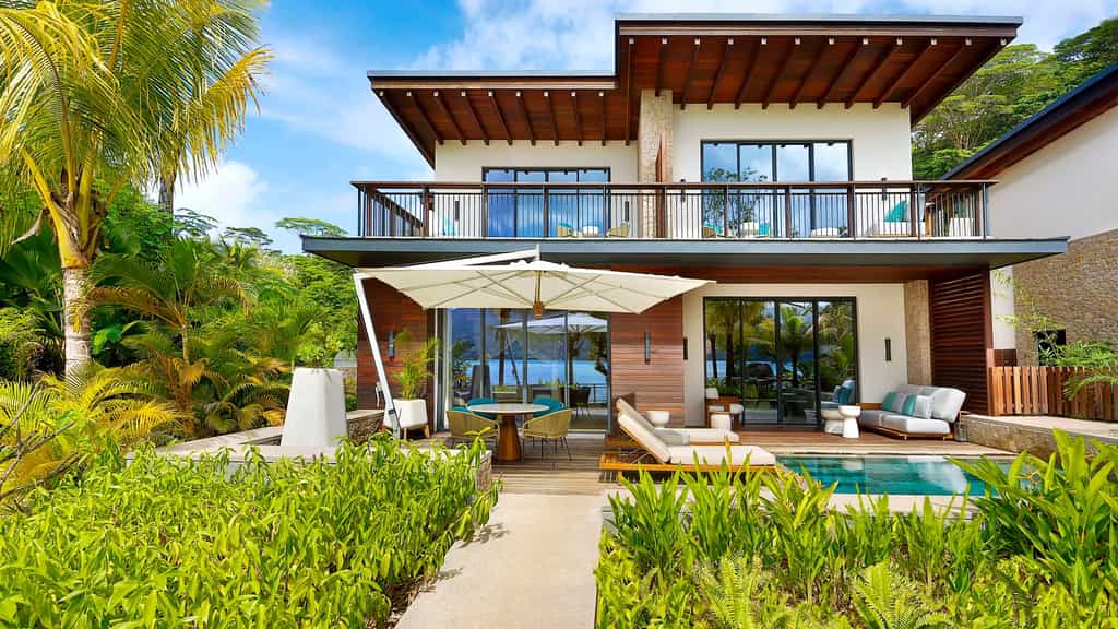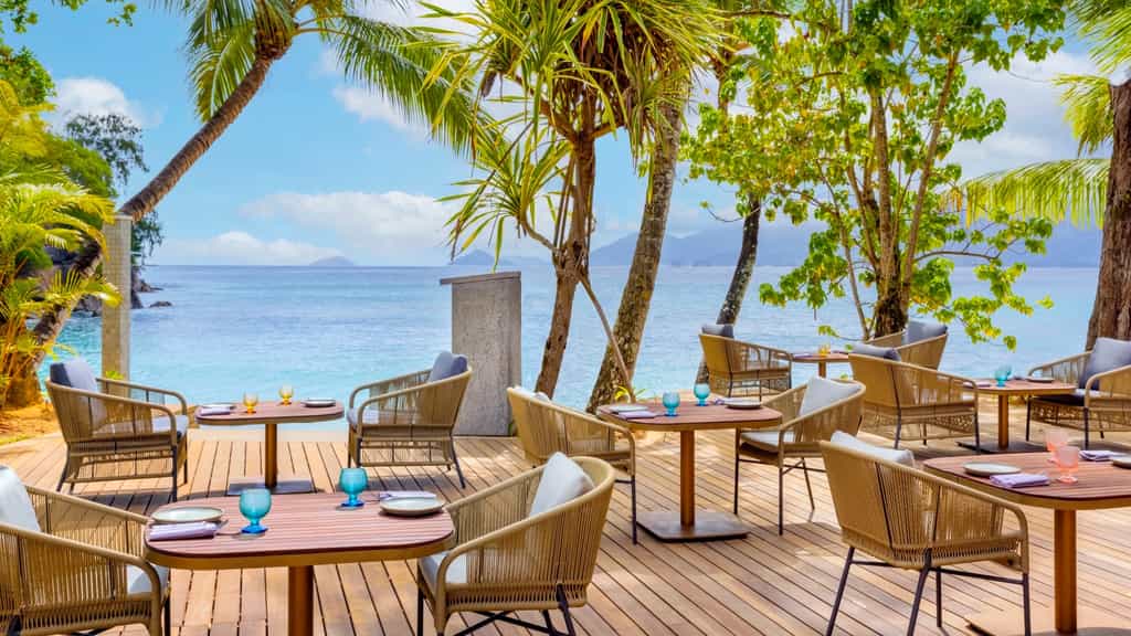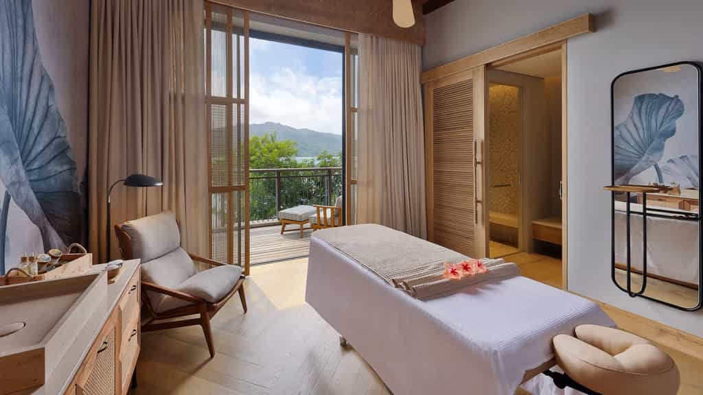 The Mango House's design is eternally fresh with floor-to-ceiling windows, bursts of blue and nods to its island locale – like the very pretty shell-inspired lights. There is an array of dining options, from rich Italian dishes to creative Japanese cuisine and the Seychelles' own Creole delicacies (the menu is entirely designed by a local team). At sunset, be sure to plant yourself at Kokoye for an expertly-mixed drink. Overlooking the Anse aux Poules Bleues bay, the tranquil spa will send your cares sailing out the window.
