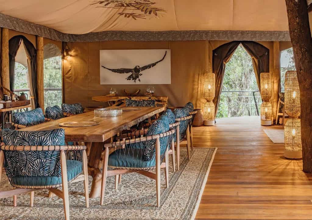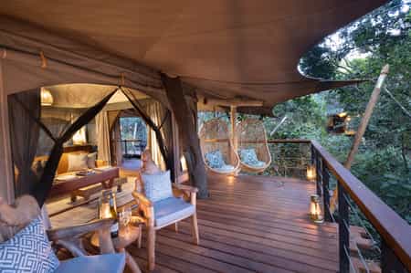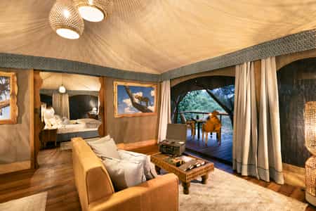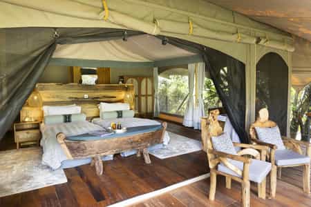 Constructed entirely on stilts amongst brilliant foliage, Mara Toto is centred around the lounge and dining areas. You'll enjoy hearty meals with fantastic variety at the communal dining tables, always accompanied by a selection of fine wines. Your evenings will be spent around the outdoor firepit as the calls of the wild fill the air. Throughout the camp, there is complimentary wifi access and guests may also use the in-house Canon camera; when it's time to leave, your photos will be loaded onto a handy memory stick.