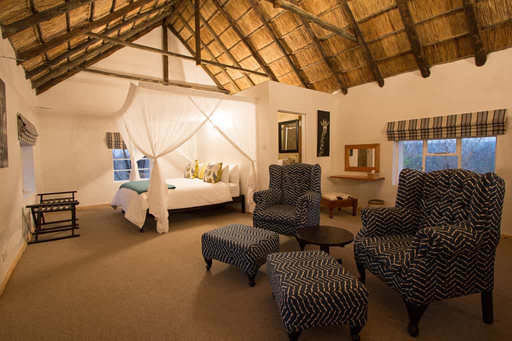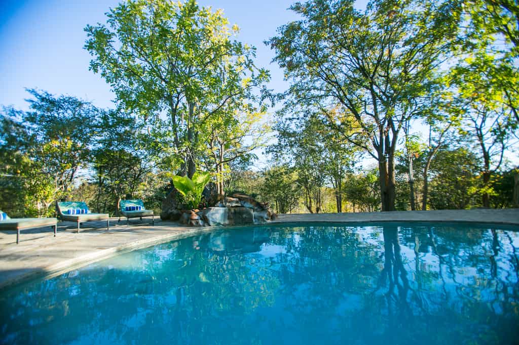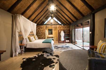 Recently renovated by its original owners, Masuwe retains its classic feel with deeply peaked thatched roofs, stone walls, plenty of wood, and gorgeous mature gardens. It sits on a forested hill near the Masuwe River, and is surrounded by natural bush that's home to a modest number of wildlife. Under cover is the open-plan lounge and dining room (where meals are generous and delicious). The large outdoor deck with hypnotic views is perfect for sundowners, and the pool is cool.