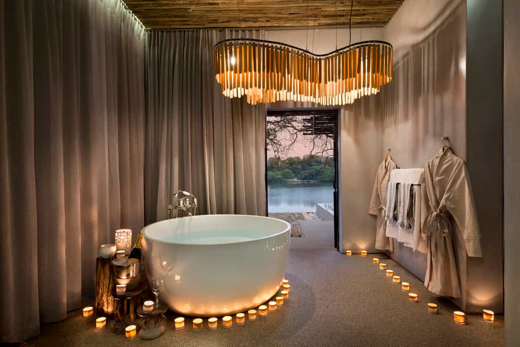 The 18 river-facing suites are spacious, light and airy with modern fixtures and plenty of whimsical charm. Bedrooms have a cushy queen sized bed, facing out to the river (quite literally on the doorstep) and you'll find stylish cow skin rugs and chic sofas in the lounge. Bathrooms are especially large, incorporating a double basin and deep, luxurious bathtub. Outside opens up to a multi-level verandah with a large seating area, plunge pool, and there's even an outdoor shower. Heaven!